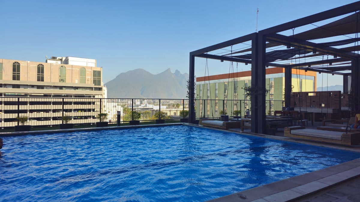 蒙特雷市中心 | 游泳池 + 健身房 + 停车位 + 自助入住
