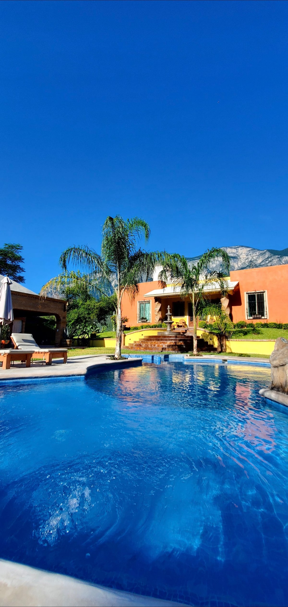 Quinta privada estilo Hacienda Está diseñada para quienes buscan una experiencia de reconexión con la naturaleza sin renunciar al confort. Relájate rodeado de naturaleza con vista hermosa a las montañas, donde se recarga energía y se respira paz y tranquilidad. Ideal para fines de semana, vacaciones, eventos especiales o simplemente salir de la rutina. Estancia hasta 20 personas y eventos para 40 o 50 personas. Costo extra. Cotiza Vive una de las mejores experiencias