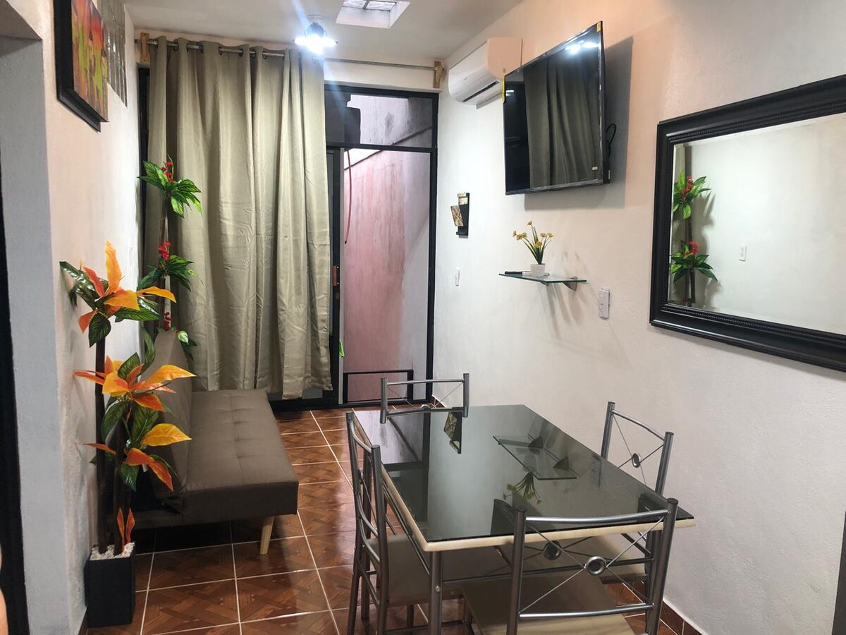 Relájate con toda la familia en este alojamiento donde la tranquilidad se respira. Departamento totalmente amueblado y acondicionada para tú comodidad cuenta con aire acondicionado frio y calor, cocina equipada con todo lo necesario para preparar tus alimentos. estamos a unos minutos del estadio universitario.y 15 minutos centro mty