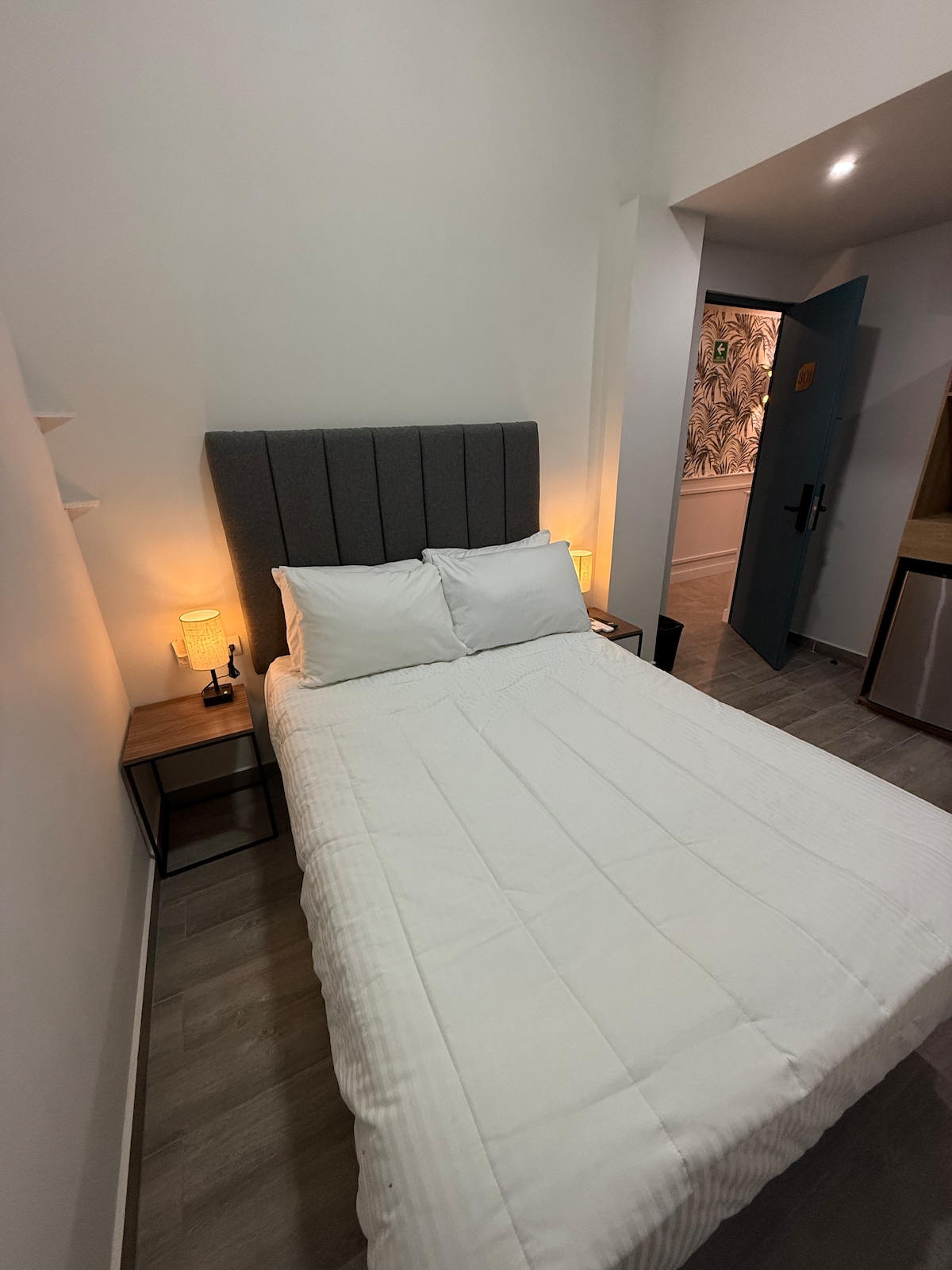 Habitación elegante y confortable para garantizar una estadía inolvidable. Todas nuestras habitaciones están diseñadas para ofrecer una experiencia de hospedaje excepcional, con una decoración moderna y funcional. Cada habitación cuenta con todas las comodidades que necesitas para disfrutar de una estancia cómoda, incluyendo aire acondicionado, TV por cable, Wi-Fi de alta velocidad, baño privado y camas confortables con ropa de cama de alta calidad.