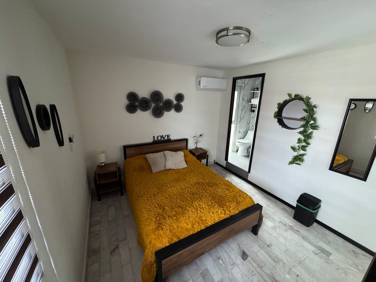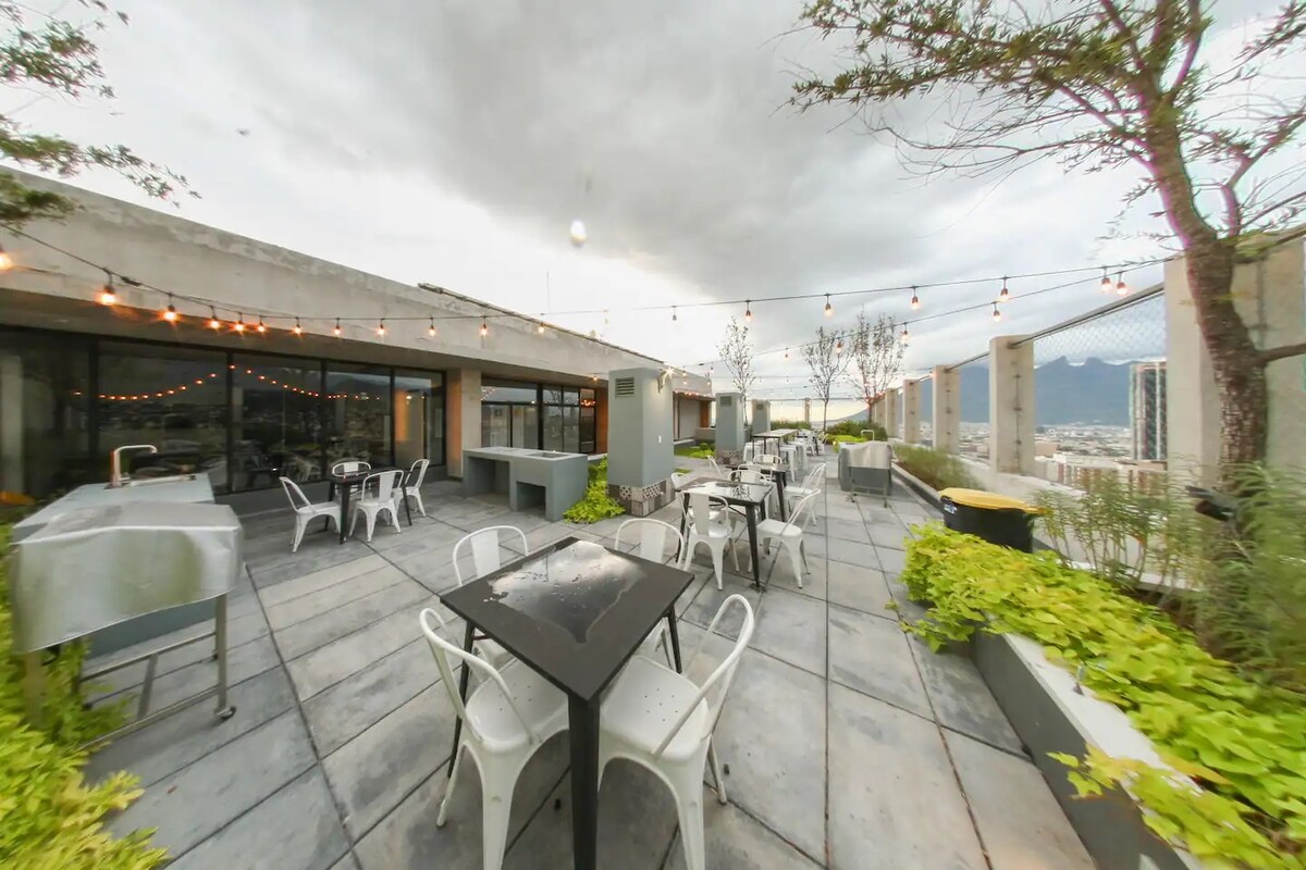 Amplio, cómodo y luminoso… ¡el lugar ideal para relajarte, descansar y disfrutar Monterrey. Lo que incluimos: -Agua potable siempre disponible 💧 -Cafe y básicos para tu estancia -Comodas camas Memory Foam y almohadas de plumón para un descanso perfecto 🛌 -Estacionamiento gratuito para 1 coche, junto a elevador -CAS a 1 cuadra -Espacio para trabajar con comodidad -TV con aplicación para películas, series y deportes