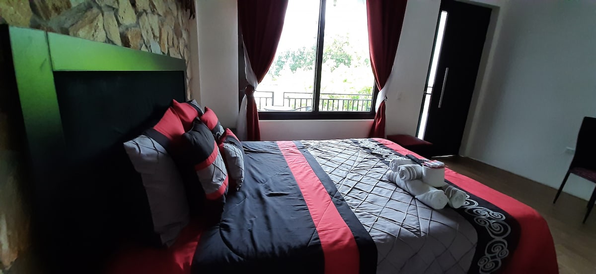 Quédate con nosotros y disfruta de La Paz y la tranquilidad que ofrece nuestras habitaciones, contamos con habitación amplio para poder descansar a gusto con una vista panorámica al área verde. Excelente ubicación cerca del lago y de la calle Santander. cuenta con una habitación y Una sala grande dónde puedes descansar contamos con TV con Netflix Wi-Fi con buena velocidad. Servicio de agua fría y agua caliente en las 24 horas área para trabajar.