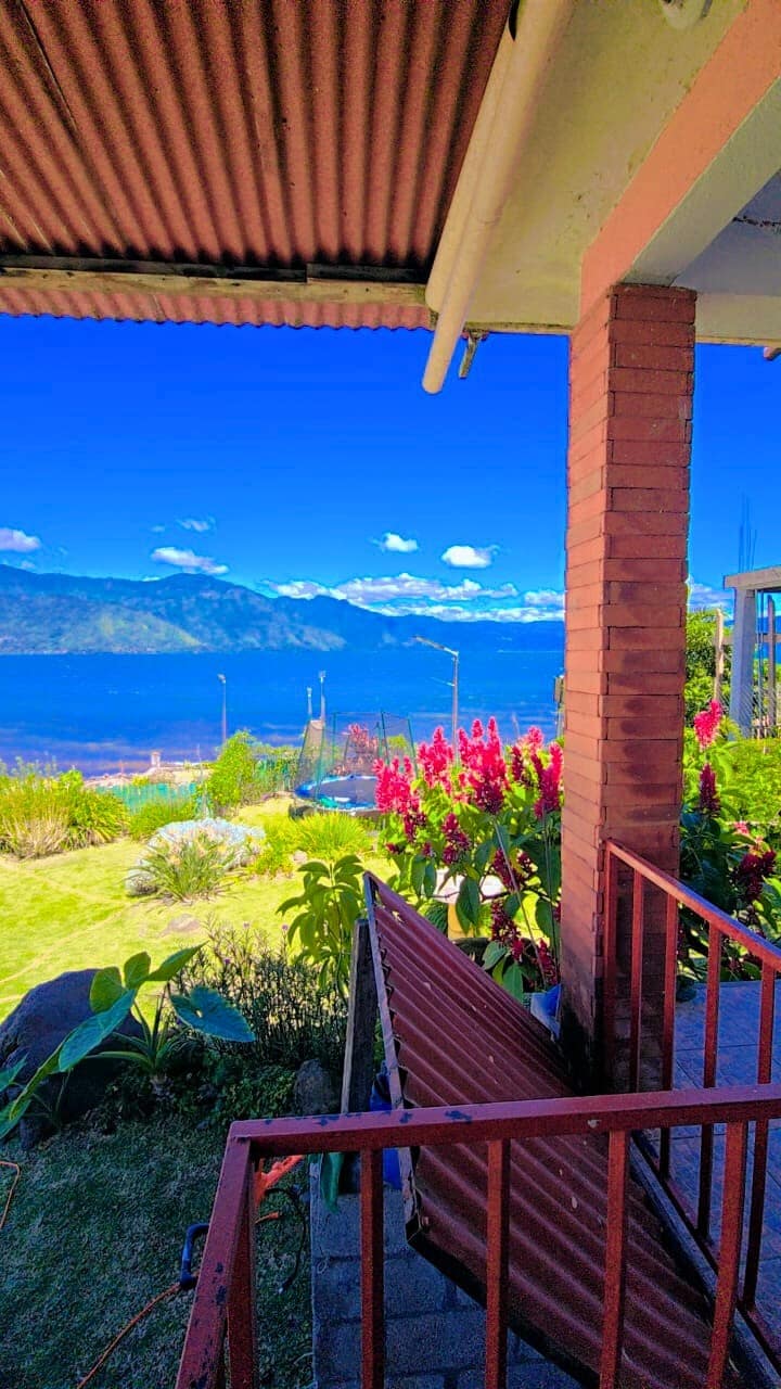 This brand new modern home is lakefront to Lake Atitlan Guatemala, the most beautiful lake in the world. Powered only by the sun, this green energy home has 3 bedrooms and 3.5 baths with a large hot tub, futbol (soccer) field, and modern dock. Come to relax and get away, and/or get some work done with highspeed Starlink internet with a powerful mesh wifi network. Residential area, yet only 5 min walk to restaurants/bars. The solar only heated hottub is not hot on rainy or cloudy days.
