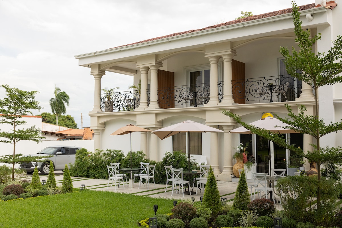 Habitación #2, para un maximo de dos personas (cama matrimonial). Un espacio diseñado para viajeros que buscan limpieza, comodidad, estilo y la mejor ubicación en San Pedro Sula. Nuestras habitaciones son similares a las de un hotel de cadena a una fracción del costo. Ubicado en una zona céntrica, segura, tranquila y rodeada de los mejores restaurantes, cafés, supermercados y servicios de la ciudad. Guardia de Seguridad las 24 horas.