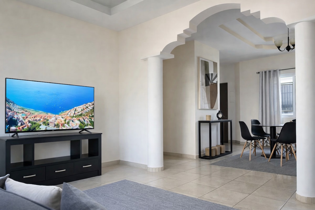 Welcome to your new apartment in San Pedro Sula! This brand-new, centrally located gem features a modern design with an open living area, stylish furniture, and bright, spacious rooms. Enjoy a fully equipped kitchen, comfortable bedrooms, and sleek bathroom. Conveniently close to dining, shopping, and entertainment, you'll have the best of the city right at your doorstep. With amenities like high-speed internet and air conditioning, this apartment offers both comfort and style for your stay.