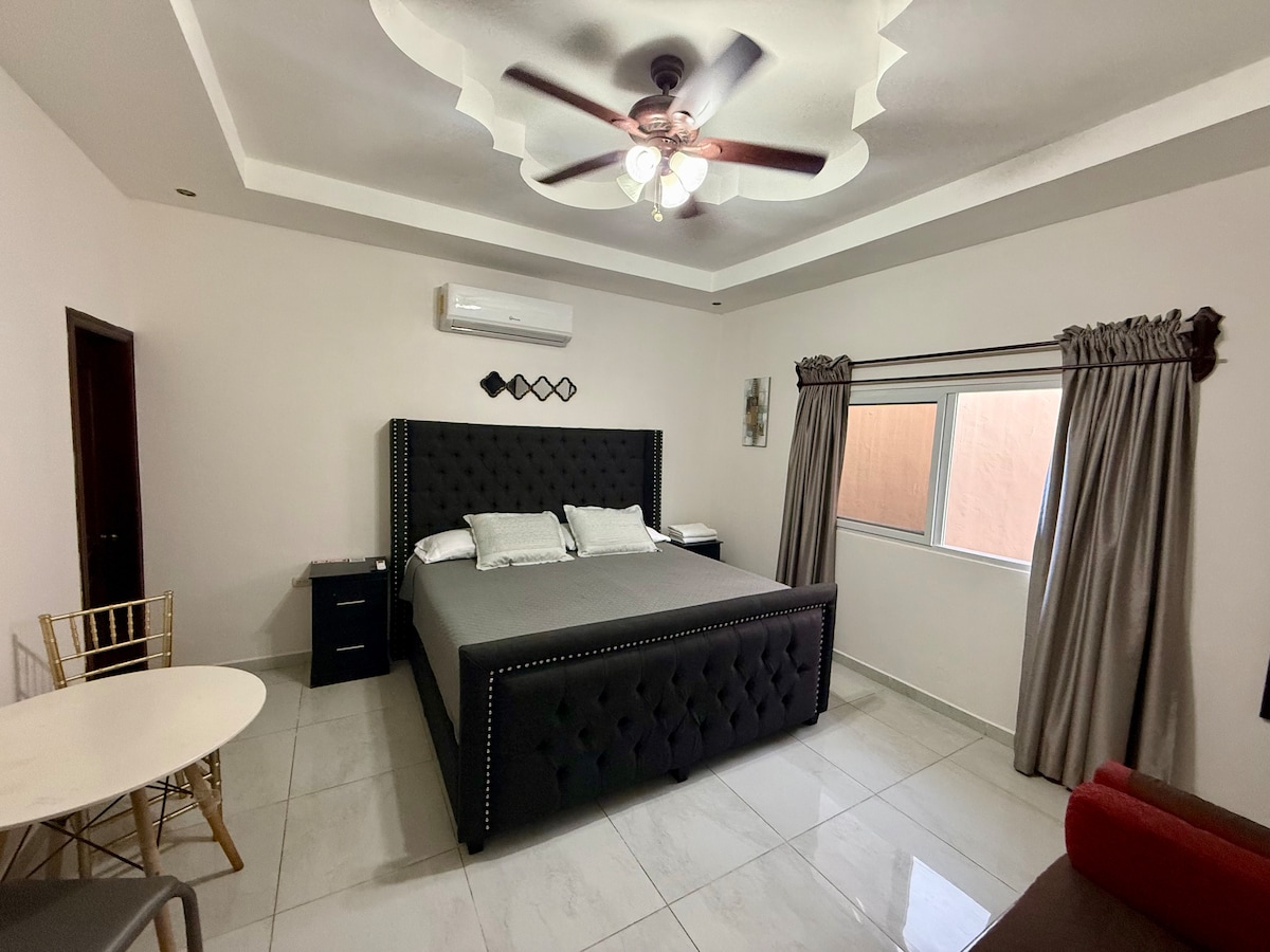 Located in Villas del Sol a Quiet and Safe Private Place. You can enjoy the following services. - Air conditioner - Private independent entrance - Wifi - Secure parking. - Safe Area in Closed Circuit Residential - Private bathroom - Tv 5 minutes from all the exits of San Pedro Sula, very central and well located near restaurants, supermarkets and shopping areas. We have our own restaurant on site and we take it to your room.