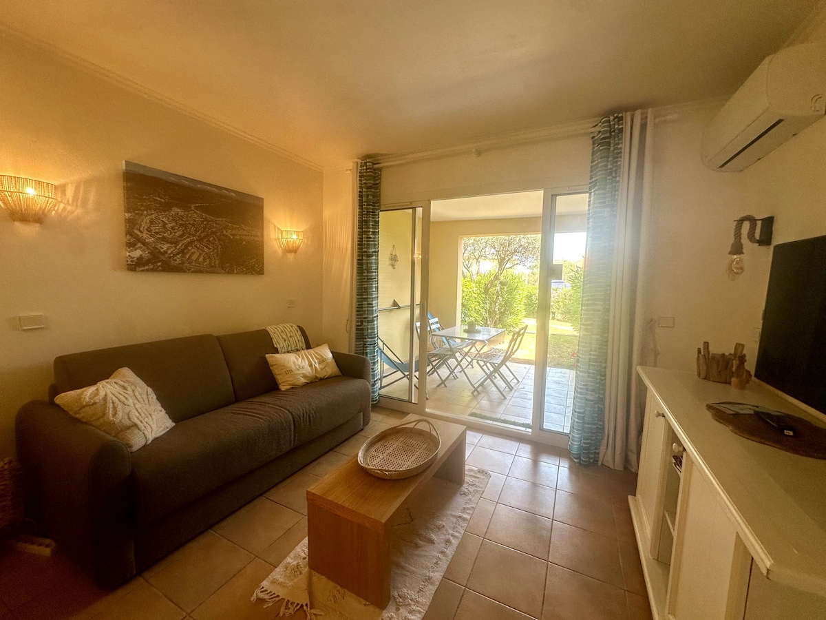 Venez vous reposer dans cet appartement rénové de 32m², climatisé et confortable avec terrasse couverte et jardin. Situé dans la résidence Les Rivages Pierre et Vacances avec piscine et snack l’été face à la mer et à pied des commerces . Vous trouverez : chambre avec lit 140 et rangement,salle d’eau avec douche et évier , wc séparé, placard,salon avec cuisine ouverte , canapé convertible en 140 Place de parking couverte Linge de lit, serviettes inclus Wifi gratuit Équipement pour bébé