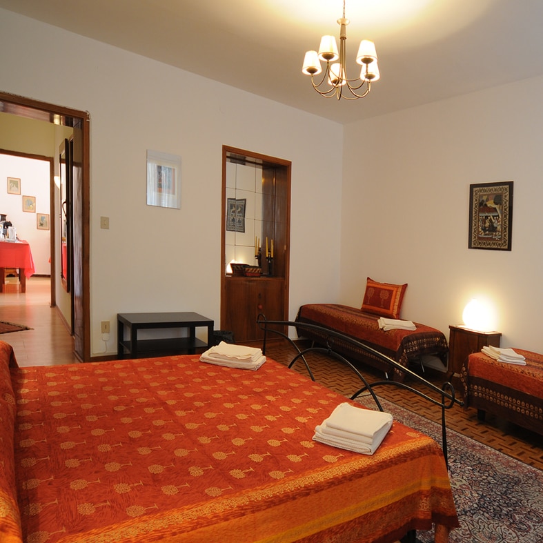 Bellissima camera da letto, con bagno privato e ingresso indipendente con porta blindata. A meno di 5 minuti a piedi da Piazzale Roma o dalla stazione. Si trova al II' piano del palazzetto, ha soffitti alti con travi a vista e pavimento in legno. Gli impianti e gli arredi sono nuovi, comodi e moderni. La stanza, luminosa e ventilata, si affaccia su una tipica corte veneziana. Dal 1570 ad oggi, ogni domenica mattina alle 10.30 i canti gregoriani dal vivo e l'incenso arrivano dentro casa. No AC.