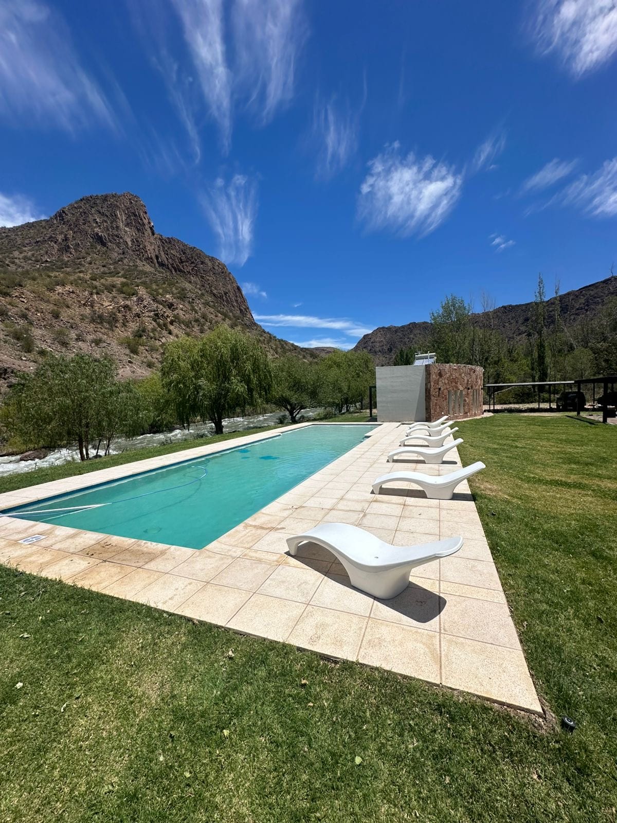 .Luxury eco-cabins on the Atuel River with private jacuzzi, large pool, and Starlink internet — perfect for couples, families, or remote workers. Enjoy 200 m of private riverfront, BBQ pergolas, and breathtaking mountain views in Valle Grande, San Rafael. Welcome to Bella Ribera, an exclusive complex of 5 private cabins on the Atuel River in Valle Grande, San Rafael (Mendoza) — featuring a large shared pool, private in-room jacuzzi, and high-speed Starlink internet.