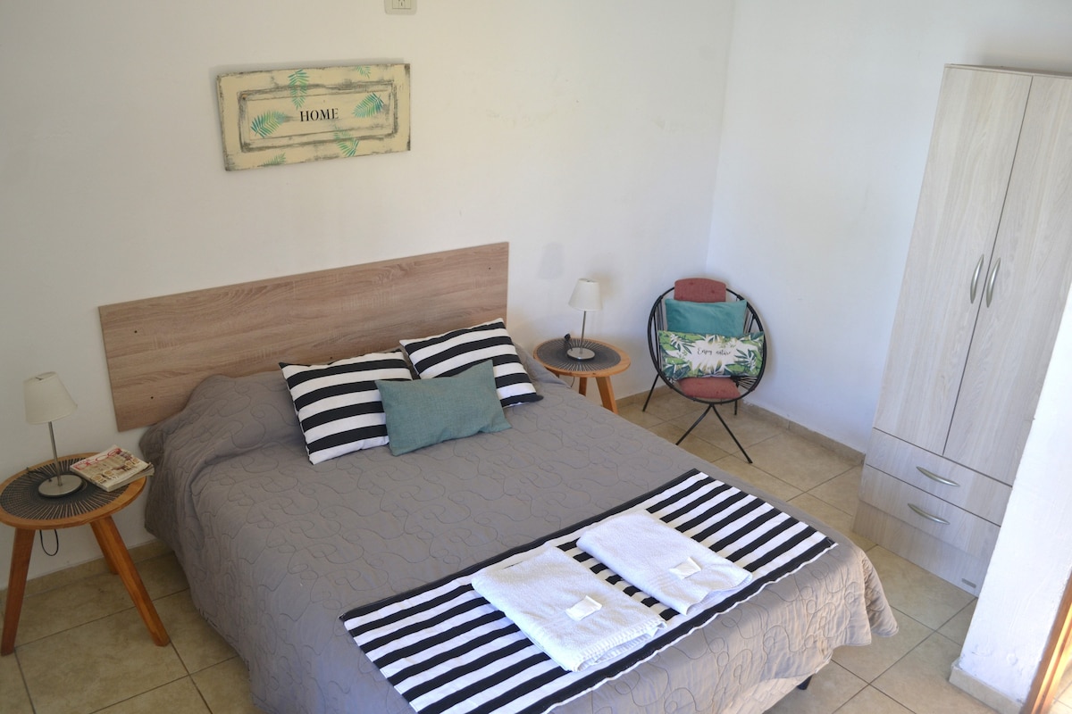 Bellisimo lugar, ubicado entre la zona comercial y de ocio de la ciudad. A solo unos minutos caminando de todo, incluidos supermecados,comercios varios y hospital. Cuenta con todas las comodidades de confort y relax, rodeado de arboles frutales; huerta organica; dos bellas pergolas; churrasquera; espacio para niños con columpio, areneo y casita de juegos. Un verdadero oasis en el centro de la ciudad.Te recibimos con un detalle de nuestra propia huerta organica y asistencia en lo que necesiten.