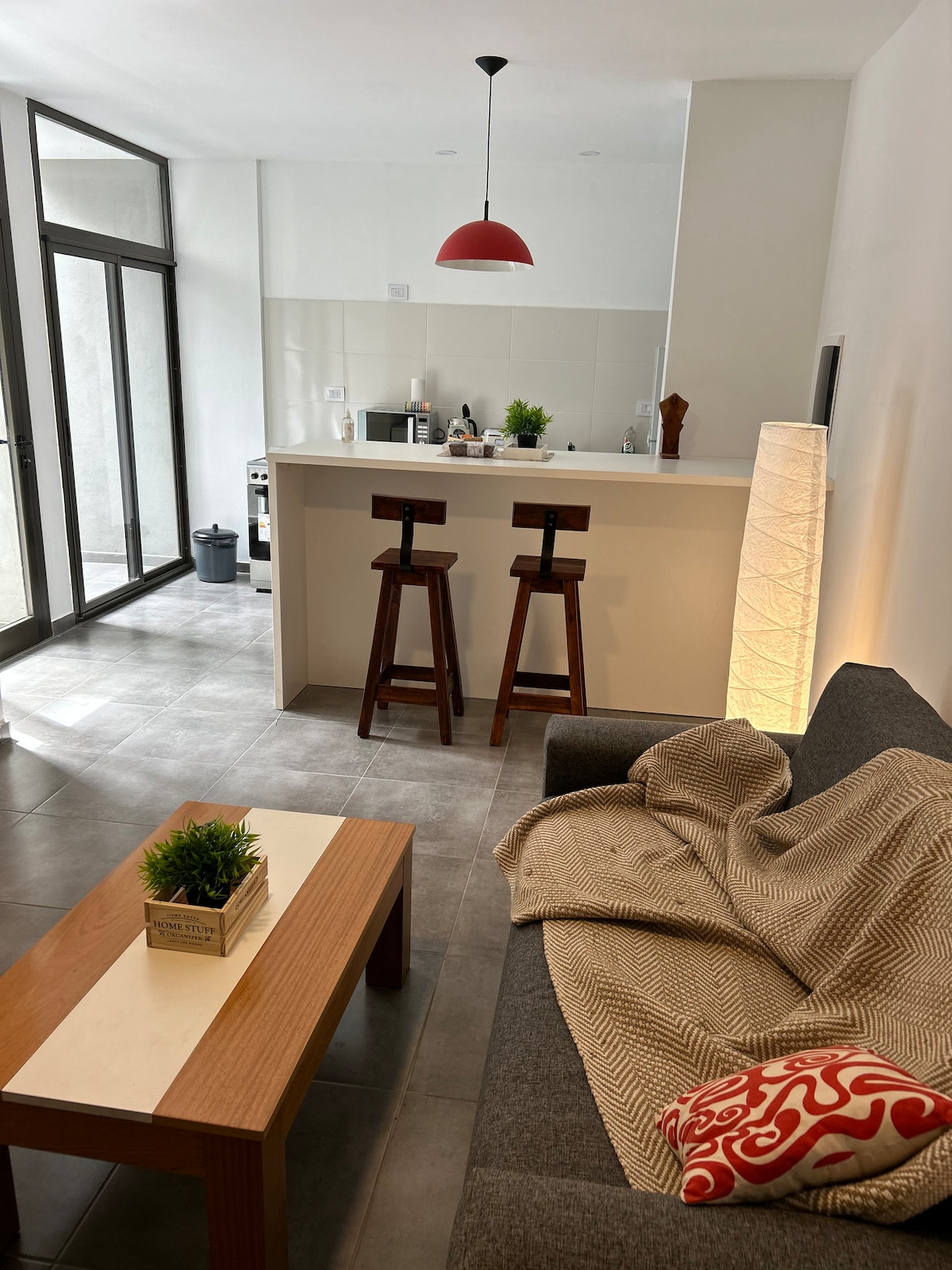 Departamento nuevo, moderno y totalmente equipado. Cuenta con cocina completa, parrilla, WiFi rápido, Smart TV con Disney+, Netflix y más, sommiers confortables, sofá, balcón con mesa y sillas, y cochera cubierta. Ubicado en zona céntrica pero tranquila, a pasos de supermercados y comercios. Ideal para parejas, viajeros solos o por trabajo. Todo el mobiliario es nuevo y pensado para tu comodidad. ¡Viví San Rafael como en casa!