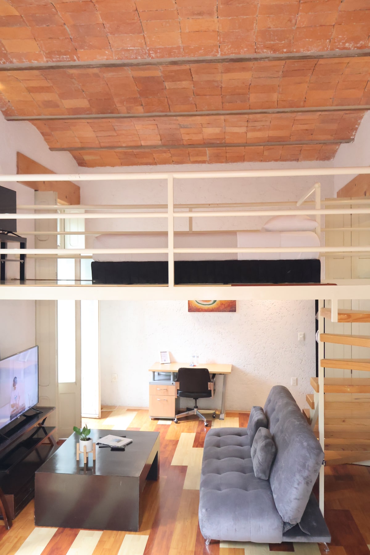 Spacious loft with terrace, balconies, kitchenette, high-speed internet, located in one of the oldest neighborhoods of Mexico City, situated in a quiet, safe area perfectly connected to the best of Mexico City. Just 8 blocks from Paseo de la Reforma and a 20-minute walk from the Historic Center, this accommodation combines architectural charm, modern comfort, and an excellent location.
