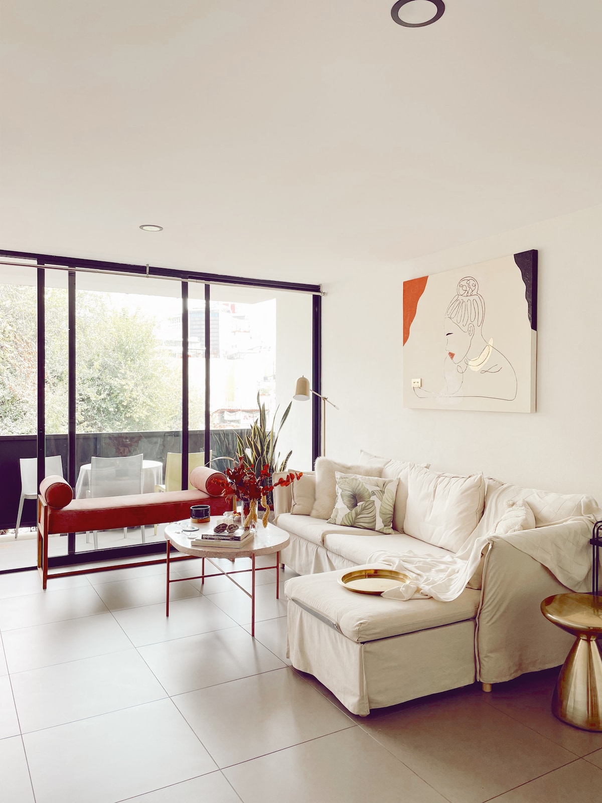 The first bedroom has a double bed, a desk and a wardrobe; the second bedroom has air conditioning, a king-size bed and a wardrobe. The kitchen and living room, with Asian design and equipped with grill, refrigerator and microwave, are surrounded by the large terrace. Located on the third floor of an elegantly renovated Porfirian building in Roma Norte. Accessed by a hidden staircase that leads to an oasis of tranquility. Inside there are two bedrooms and a fully equipped bathroom.