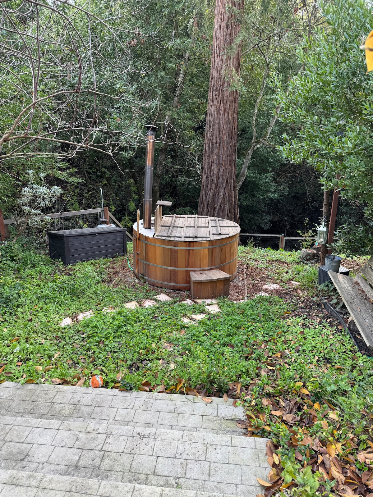 Hike up to a well designed, small-but-mighty modern cabin with fast WiFi, your own hot tub and a panoramic view spanning across the bay from the Golden Gate to the San Mateo bridge. 108 stairs lead up to the Aerie, so if you don’t want to get your steps in, this is probably not the space for you! 15 min from OAK and city life, but a world away. Sunsets are glorious here. The Aerie is a special spot just for 1 or 2, so leave the posse behind. Registered guests only.