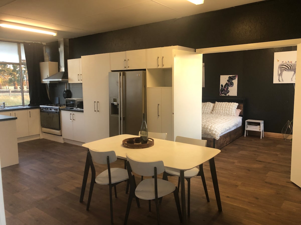 Coastal-modern private guesthouse studio space, only 500m from stunning Surf Beach, Phillip Island. Fully self-contained, detached from main house, access via side entrance, free off-street parking . Separate bathroom & fully functional kitchen. Edible garden space, outdoor verandah & firepit. Walking distance from a bottle shop & pizza & coffee vans, public transport & bicycle tracks. Perfect for couples, safe for singles, welcoming to LGBTQIA+, seniors & …dog friendly! (Sorry no cats)