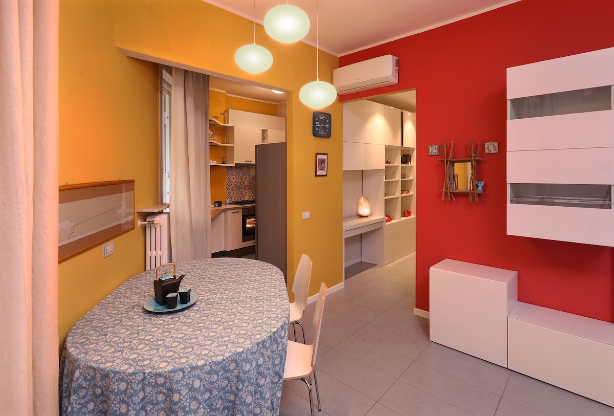The accommodation with independent access from the garden, used by guests for outdoor breakfasts, consists of 2 rooms: the living area for preparing breakfast (no cooker) equipped with: fridge, electric oven, coffee machine, kettle, milk warmer, table and sofa; the large double bedroom (16 sqm) with exclusive bathroom. The sofa converts into a comfortable double bed in case of more guests. ATTENTION! NO kitchen, washing machine and TV, not suitable for long stays Possibility of outdoor parking.
