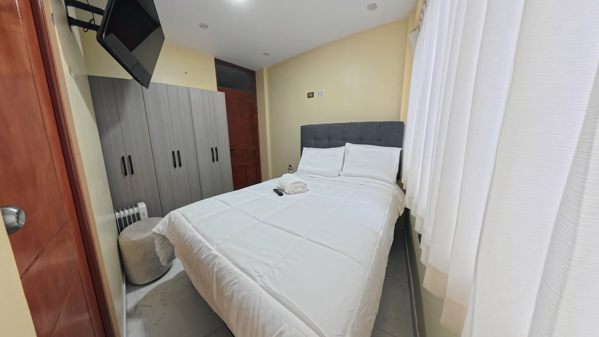 ¡La vista te impresionará y disfrutarás de un ambiente privado y luminoso! ❇️ Sala de estar con smart TV ❇️ Estación de té con hervidora, termo, microondas y vajilla. ❇️ 1 cama matrimonial ❇️ Ducha independiente y privada. ❇️ Baño independiente y privado. ❇️ Garaje privado (con pago adicional) La zona es segura y podrás visitar un mercado tradicional, ¡ven y sumérgete en la cultura de Puno!