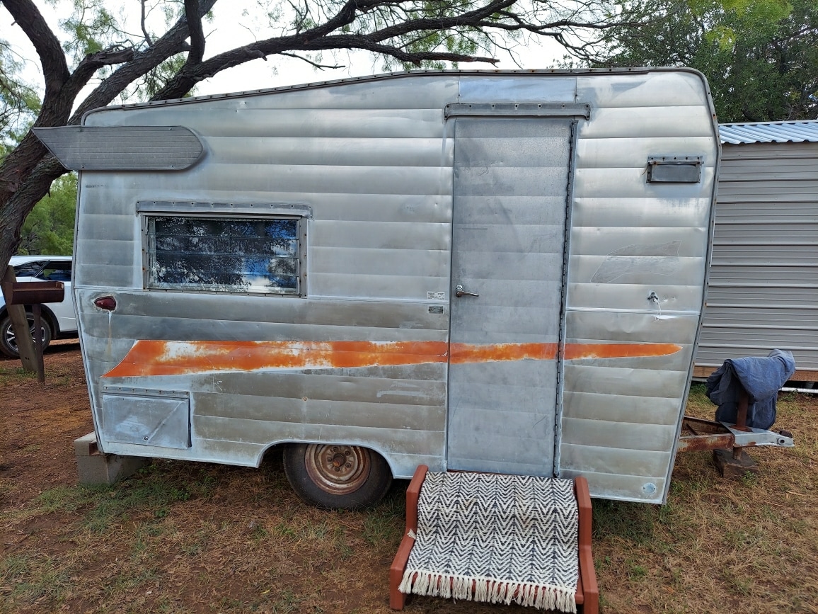 Super small but cute camper to stay a few nights. Right next to historic Regency Bridge and right on the Colorado River, where you can kayak, fish, tube and all the things. [When conditions allow.] Stargazing is incredible here, and sunsets from the bridge are always lovely. Bathroom with shower is a 1 minute walk. Water access is a 1 minute walk. Quiet, secluded spot.