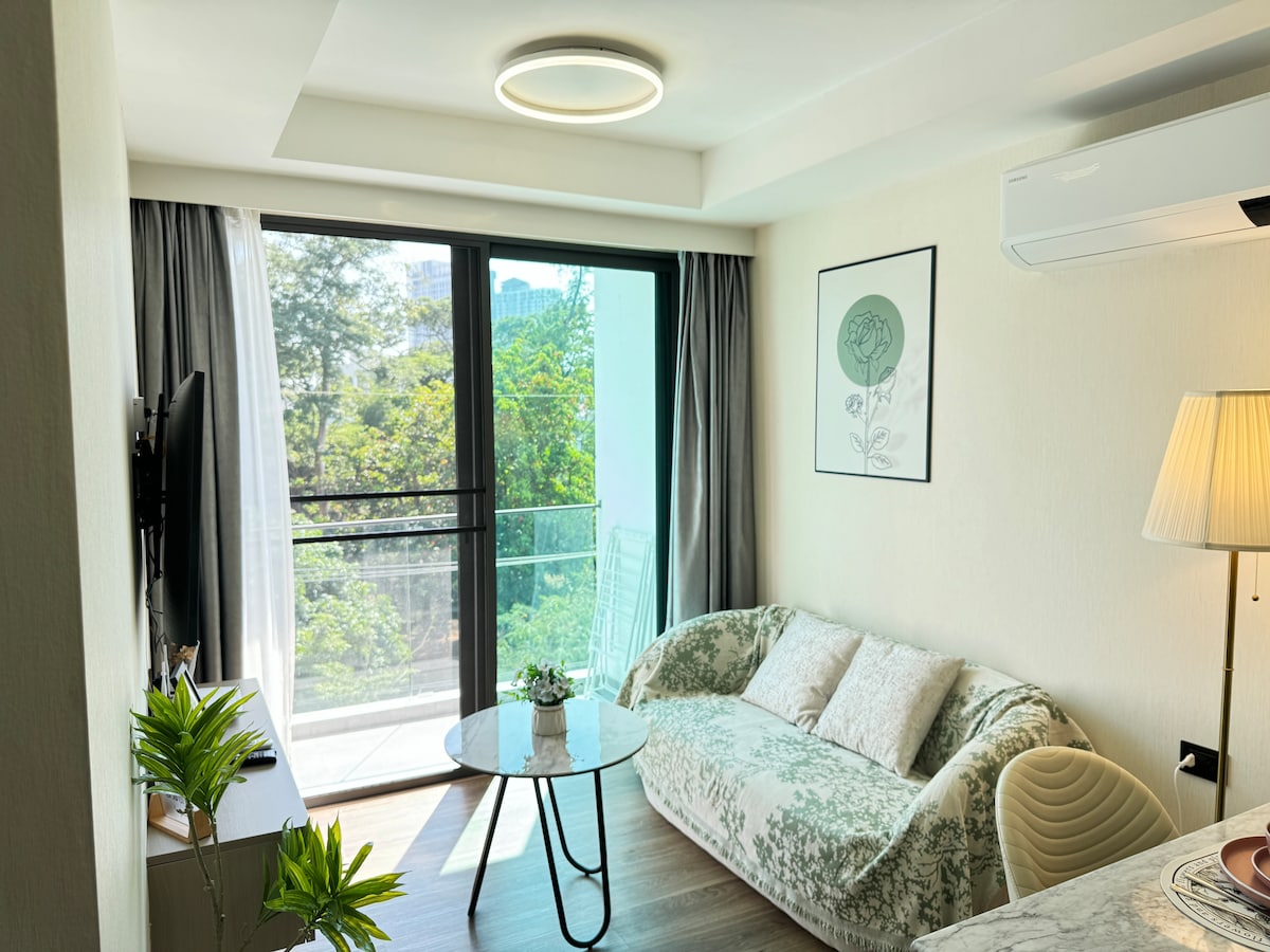 Relax in a stylish 31 m2 room with stunning views of Doi Suthep mountain in the heart of Chiang Mai's vibrant Nimmanhemin area. The room is fully furnished and equipped with everything you need for a comfortable stay, including high-speed internet, kitchenette, washing machine After exploring Chiang Mai's many attractions, relax by the rooftop pool or challenge yourself in the on-site gym. This place is the perfect place to stay for travelers seeking a modern escape in the heart of Chiang Mai.