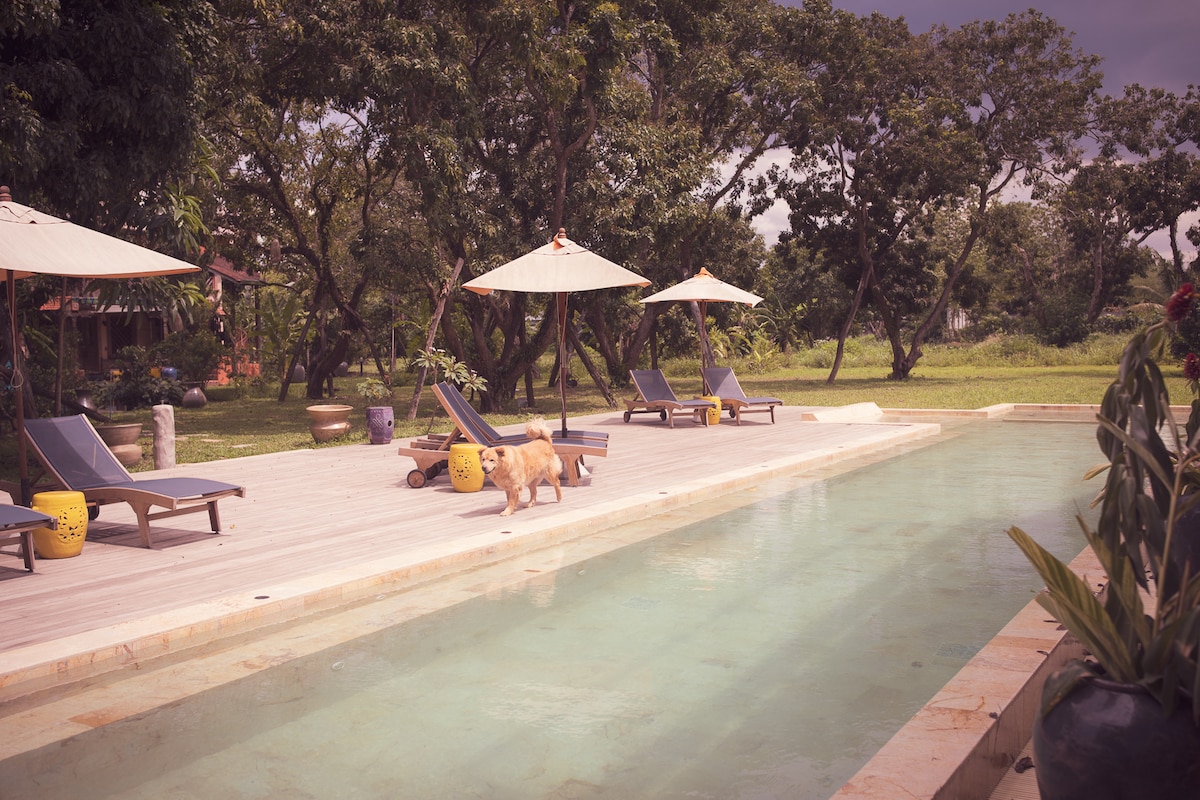 Step up to the rustic 'tree house', Thai style veranda, lush gardens and palm trees. A beautiful bedroom with high ceilings, traditional Thai teak bed, a Unique carved bed colonial style furniture and beautiful colorful glass ceiling tell the story of nature, Bird and Trees. The bedrooms are air conditioned and the bathrooms are semi or open air with mosquito screening option. Also has a Thai style veranda living room with a Thai temple decorated where one can relax, read, book or dine here.