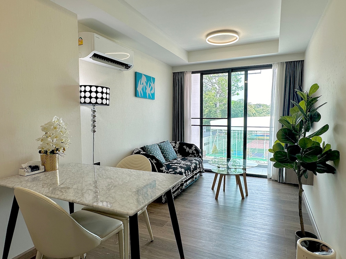Welcome to your stylish home-away-from-home in the heart of Nimman. This rare, 41m² corner unit on the 6th floor offers spacious comfort and clean elegance. Savor tranquil Doi Suthep Mountain ⛰ views as the sun sets. Evenings invite cozy movie nights on the HUGE 60" Smart TV with a mini theater. A convenient sofa bed sleeps two extra guests for seamless family travel. One Nimman and Maya Mall are minutes away on foot. Enjoy the pool and fitness facilities for a complete, and relaxing stay.