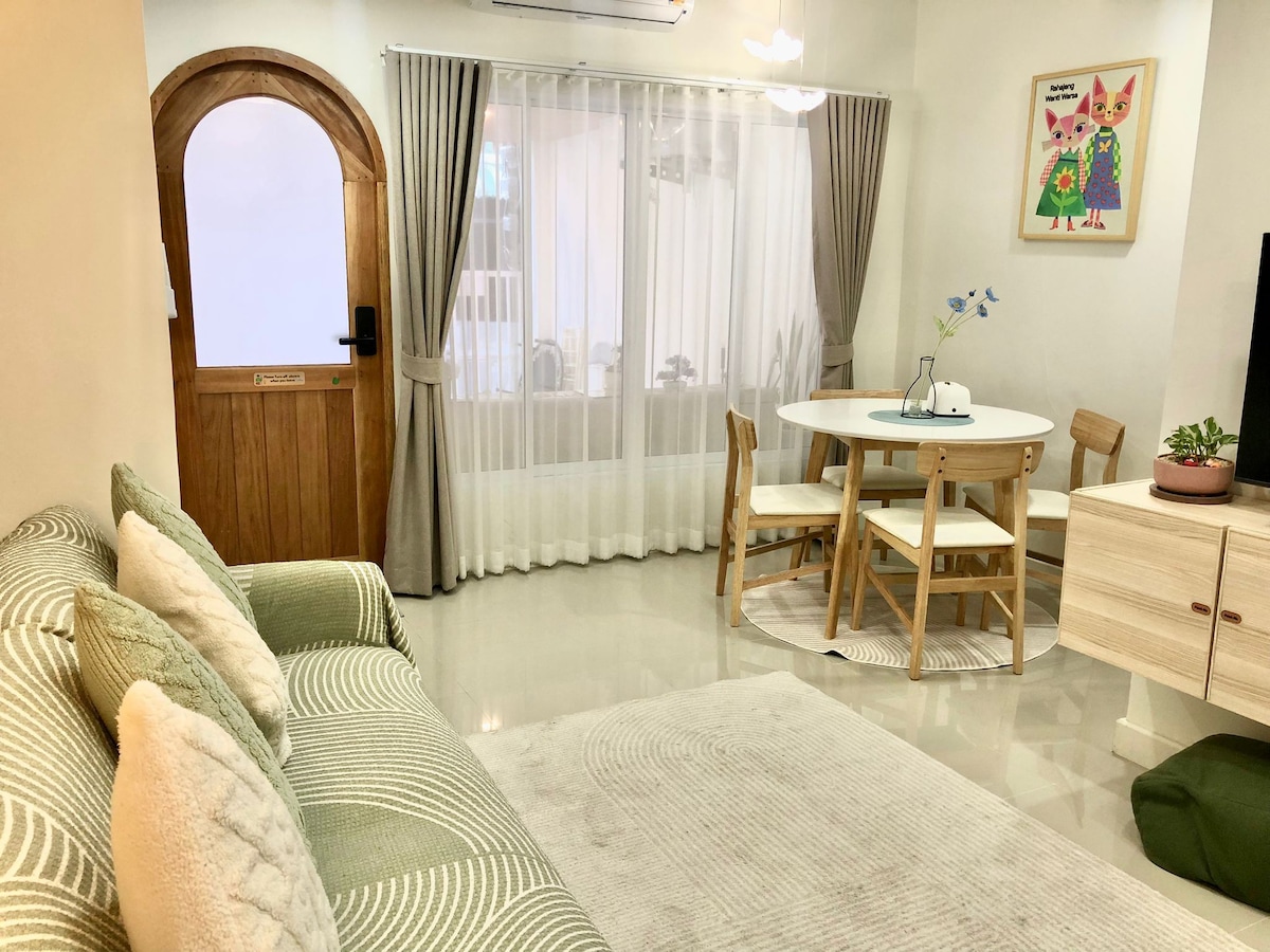 Easygoing, clean & bright 2 bedroom 2 bathroom townhouse: A lovely stay in central Nimmanhaemin 💛A Charming & simple setup for relaxing short or long trips with kitchen. A cozy place at a convenient location, just walking distance to cafes, malls, restaurants, massages and Taxi points. ✨Discount for 7+ nights! With Electricity & water charged only by pay-per-use meter 👍 Stays 1–6 nights : No utility charges if usage is within the limit. No worry,it’s more than enough for a comfortable stay.