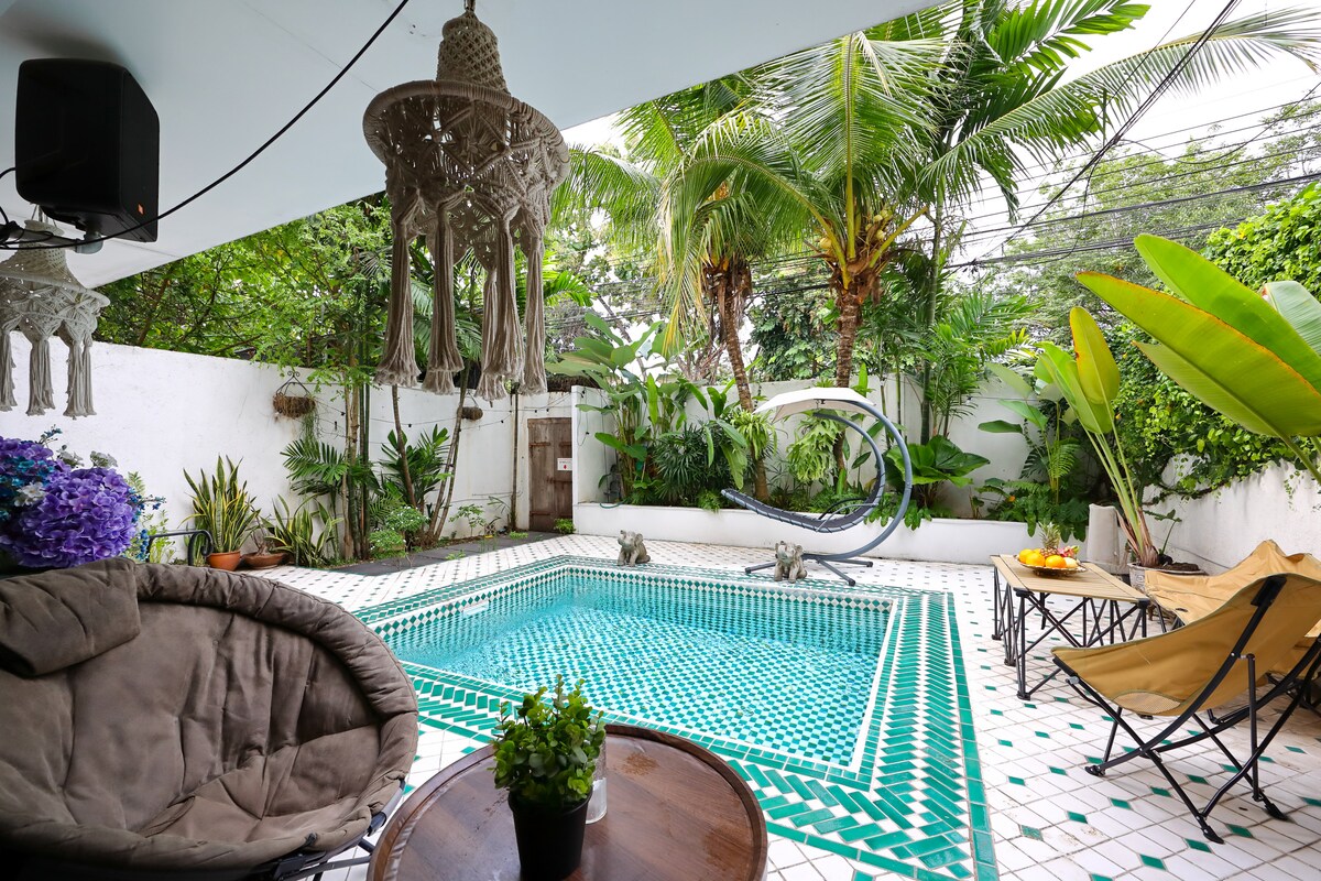 Our beautiful villa is a perfect getaway for family and friends. It is equipped with air conditioners, kitchen, work desk, private swimming pool and large green garden. Our family as architects built this place as a holiday home. And now, we want to share it with anyone to come and enjoy their time in Chiangmai. The home is located by the riverbank of a local neighbourhood. We would be more than delighted to have you, you friends and family over at Baan Thip Villa. For more details read below:
