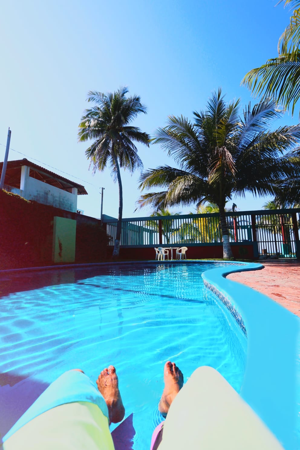 Relajate, y disfruta con tu familia en un lugar lleno de paz y tranquilidad en nuestra casa de playa donde podras disfrutar de un hermoso amanecer y noches estrelladas con un clima calido de playa. Puedes relajarte nadando en la picina mientras esperas que se cocine un delicioso asado a la parrilla, oh si prefieres puedes caminar TRES CUADRAS A LA PLAYA mas cercana. Nuestra hermosa casa de tres habitaciones 3 camas matrimoniales, dos individuales dos baños y cocina . Espacio esterior y hamacas
