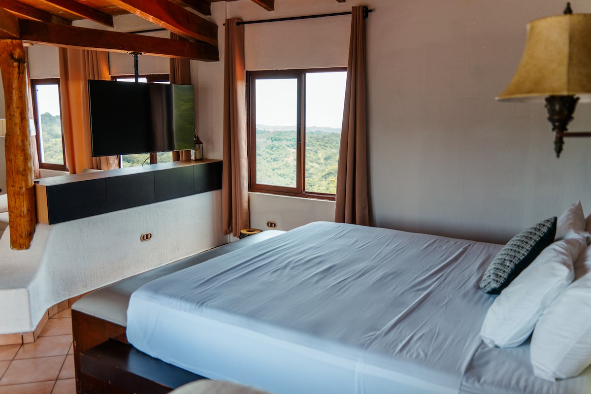 En Casa Kallis te ofrecemos la habitación Alborada, aquí podrás relajarte en un espacio cómodo y elegante, con una hermosa vista y rodeado de naturaleza. Esta habitación con jacuzzi es perfecta para desconectar y disfrutar de una experiencia boutique única. También te ofrecemos un ambiente tranquilo, restaurante en el lugar y una ubicación ideal: a solo 15 minutos del centro comercial más cercano y muy cerca del pintoresco pueblo de Huizúcar, sus cascadas naturales y su iglesia colonial.