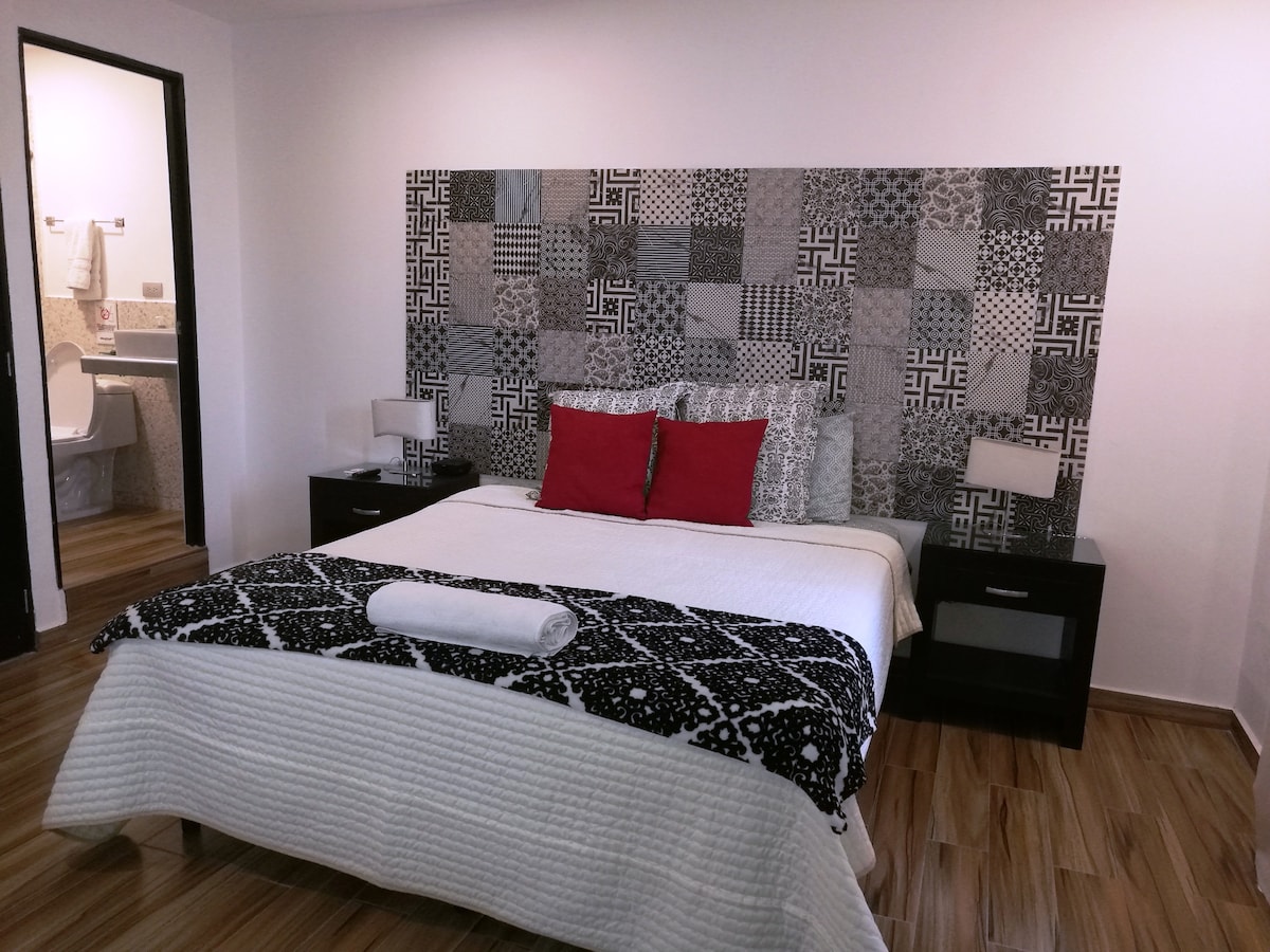 El dormitorio cuenta con 2 camas y la posibilidad de poner una cama extra para poder hospedar hasta 6 personas. Es completamente privada y tiene baño privado con agua caliente, televidor y wifi. Incluimos un desayuno continental por persona y contamos con varios amenities adicionales dependiendo del numero de noches de la estadia. Contamos con una de las mejores ubicaciones en la ciudad. Cerca de oficinas, restaurantes y supermercados. A solo 30 min de la playa y otros lugares turisticos