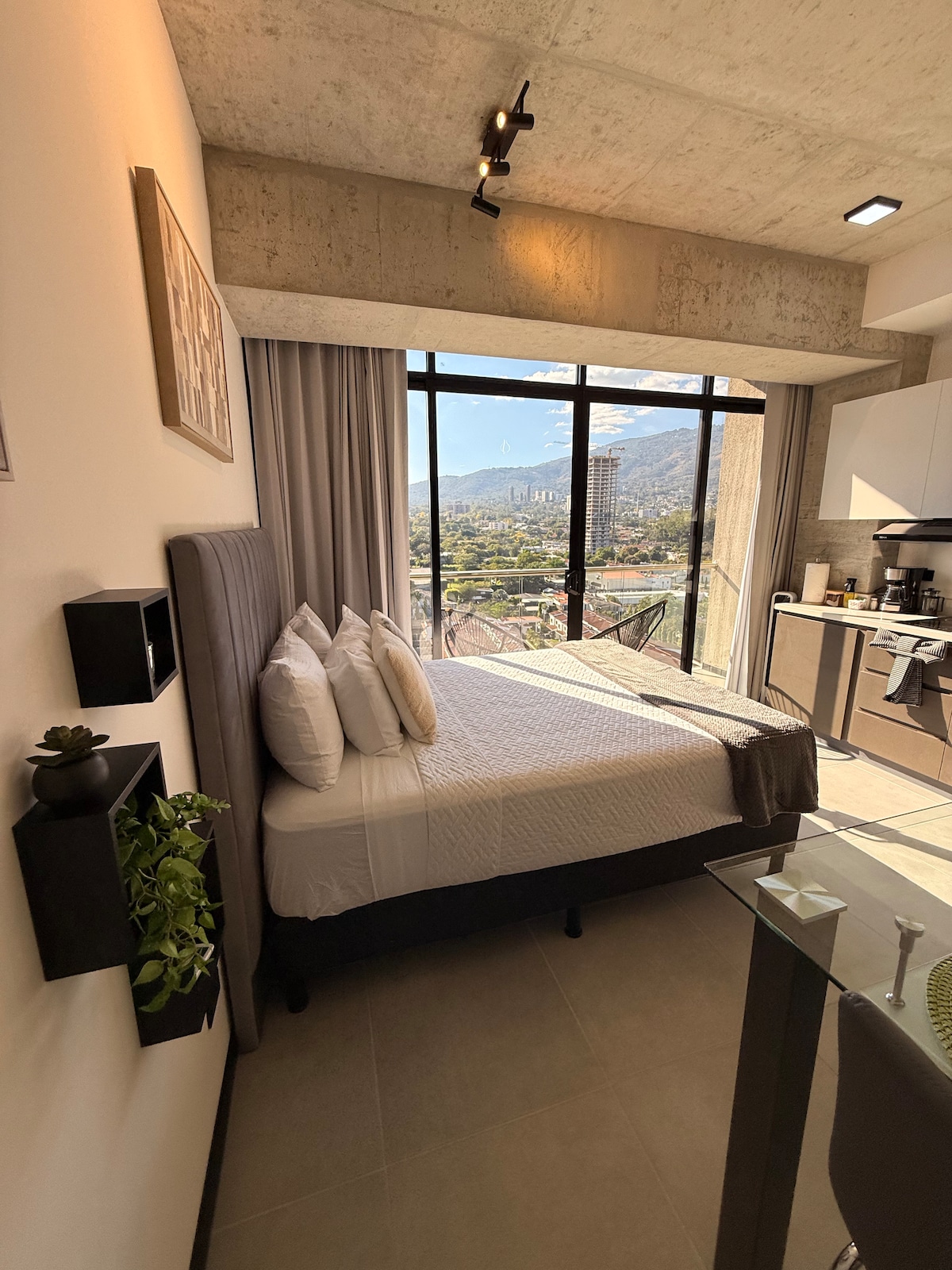 Apartamento de un solo ambiente, nuevo a estrenar, ubicado en el corazón de San Benito,una de las zonas más céntricas y seguras de San Salvador. Con vista al Volcán y la ciudad, ideal para trabajo remoto, nómadas digitales, parejas y viajes de turismo, negocios o descanso. A 15 min del Centro Histórico, y 1 h de las playas de La Libertad. Frente a supermercado y a pasos de Zona Rosa, restaurantes, cafés, bancos y malls. Excelente conectividad y fácil movilidad.