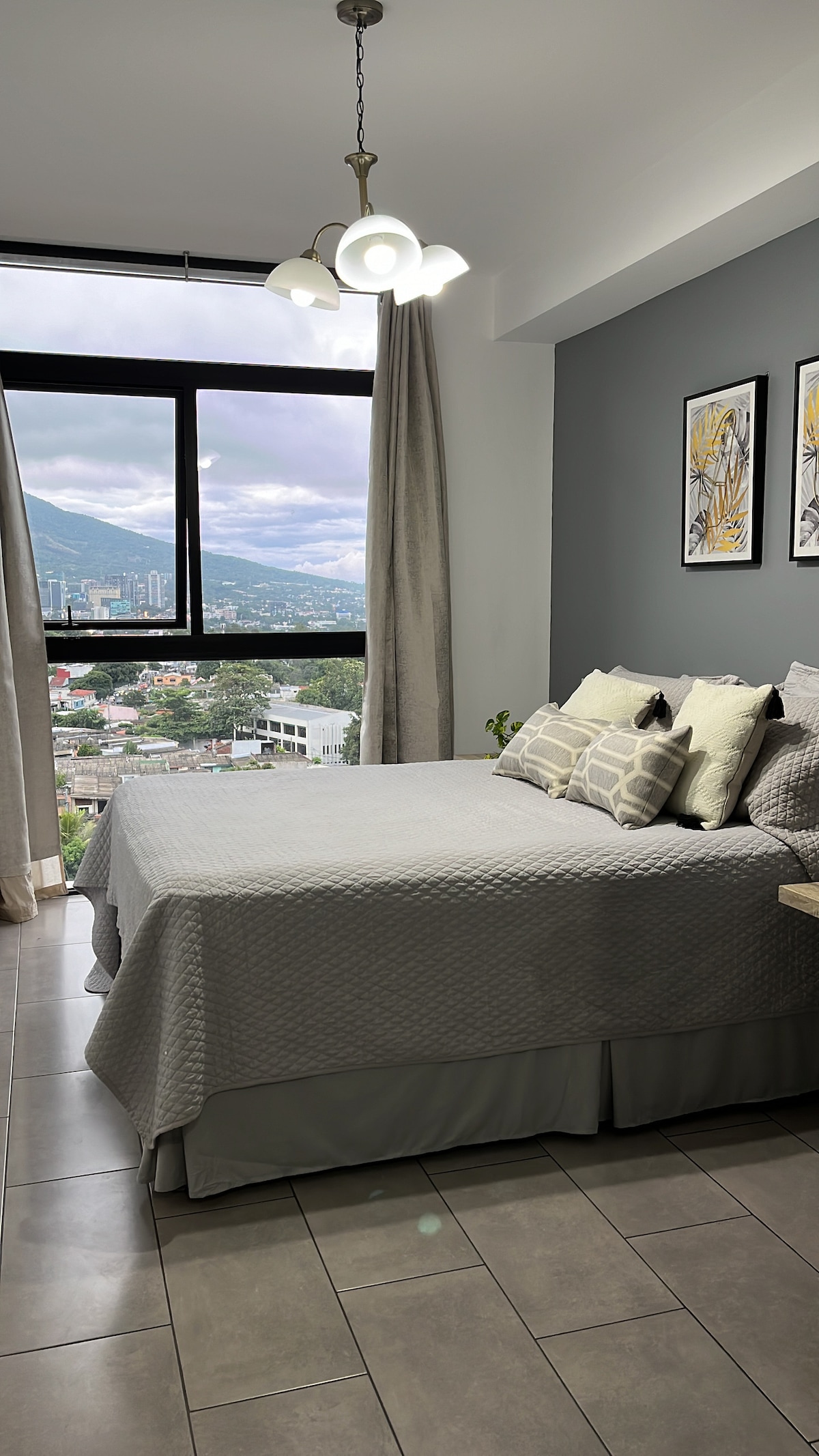 Disfruta y relájate, en este nuevo y elegante apartamento que cuenta con una linda vista al volcán de San Salvador. Que cuenta con todo lo necesario para que te desconectes de la vida cotidiana. El apartamento cuenta con todo lo necesario para ser de tu estancia lo mas placentera.