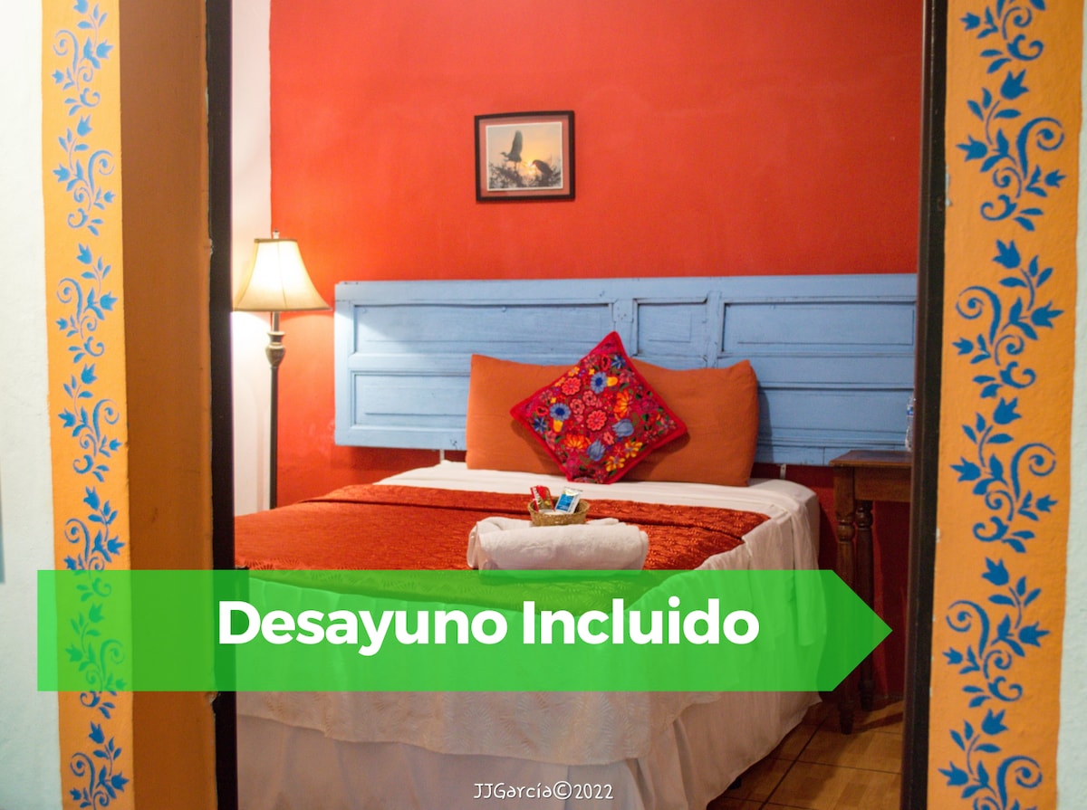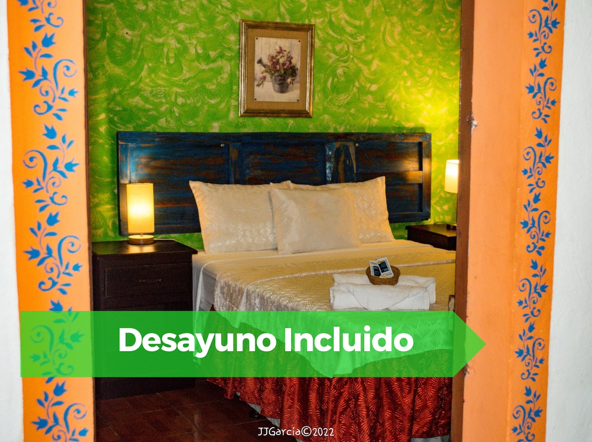 Enjoy our deluxe private double room w/complete bathroom! Submerge into Salvadoran culture by sleeping under the guard of “The Lord of The Forest”, Yum Kaax, in our conceptualized room that combines the comfort you deserve with our Mayan Culture. Your stay includes free breakfast! The room also includes cable t.v, a/c & wi-fi. We're open 24/7 located in one of the best and safest locations of the city: La Zona Rosa, San Benito.