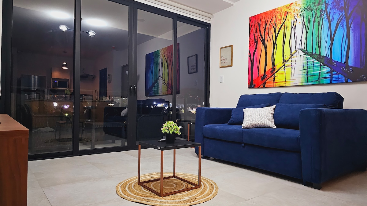 High-end luxury style 1-Bedroom apartment right in the heart of El Salvador del Mundo. Enjoy a stylish experience at this centrally located apartment close to shops and restaurants. Amenities Included: Welcome beverages AC in bedroom AC in living room Fast internet Bluetooth speaker Hot water Coffee machine and tea Air purifier Body soap and shampoo Laundry with detergent Smoke alarm Carbon monoxide alarm Professionally cleaned 24/7 security