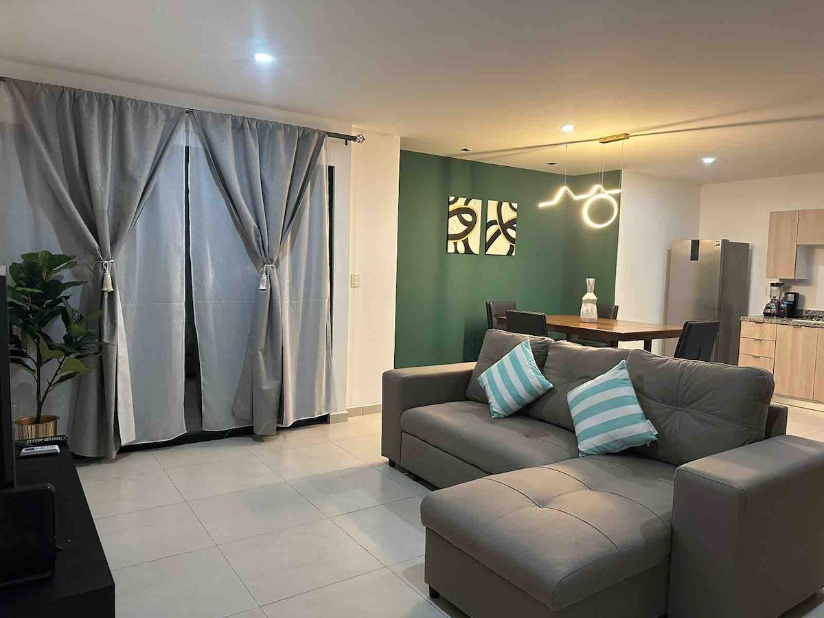 ¡Tu espacio ideal! Apartamento céntrico, seguro y moderno con vistas espectaculares. Máximo Confort Garantizado: * 3 habitaciones privadas, amplias y con aire acondicionado individual (hasta 6 huéspedes). * Cocina equipada. * Vistas panorámicas de la ciudad que te encantarán. Disfruta de una ubicación inmejorable con acceso fácil y rápido a todos los puntos clave. Un diseño pensado para una estancia cómoda e inolvidable. ¡Reserva ahora y comienza a crear recuerdos en tu estadía! Te esperamos.