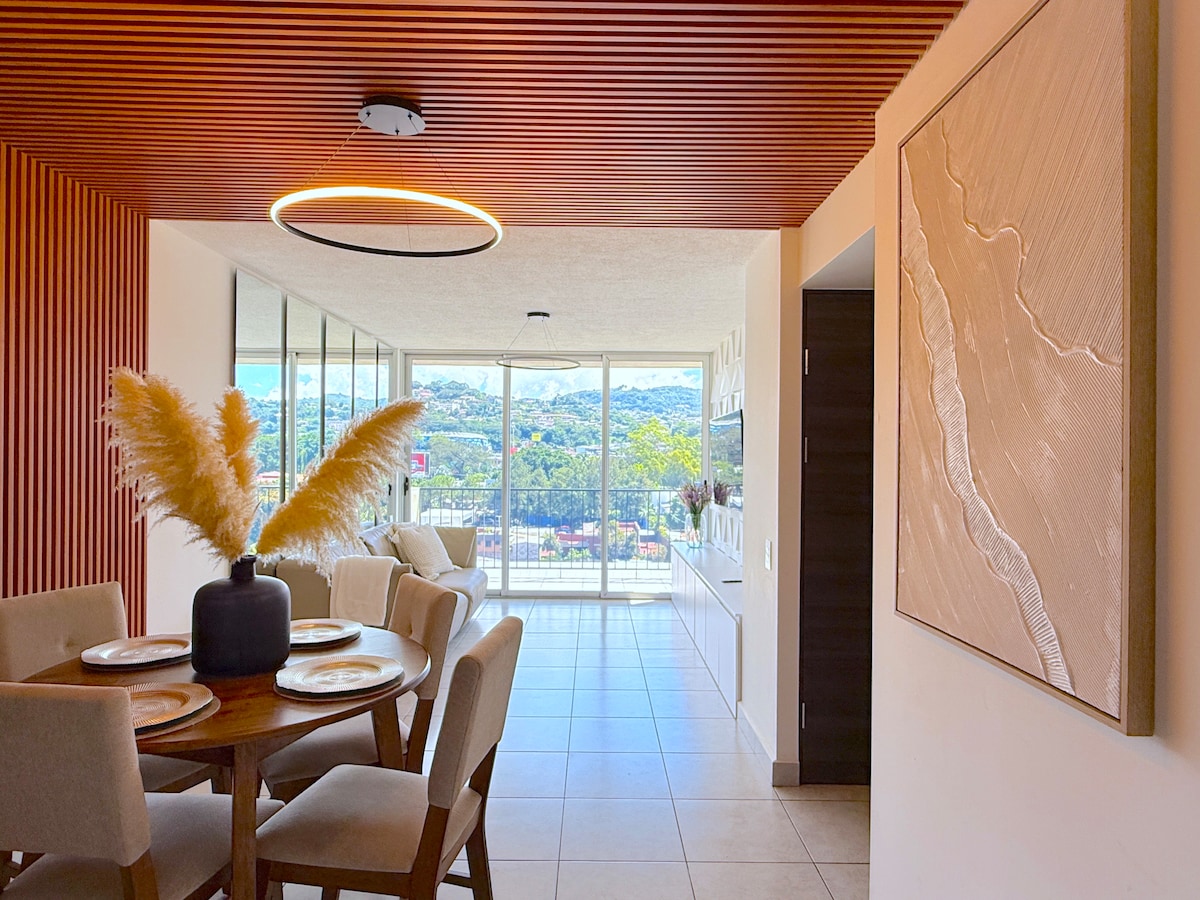Disfruta y relájate, en este nuevo y elegante apartamento que cuenta con una linda vista al volcán de San Salvador. Que cuenta con todo lo necesario para que te desconectes de la vida cotidiana. El apartamento cuenta con todo lo necesario para ser de tu estancia lo mas placentera.