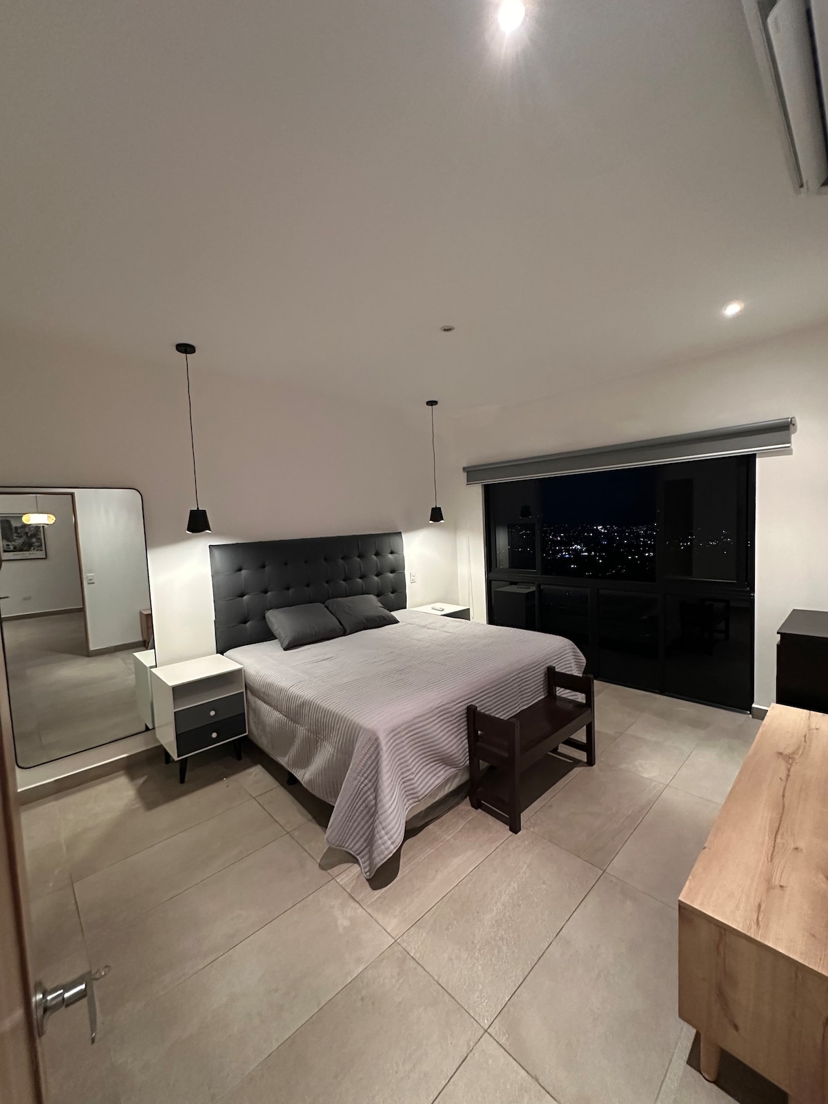 Acogedor apartamento, situado en zona céntrica de la capital, con una increíble vista desde el piso 7, podrás apreciar la ciudad, el centro histórico y los cerros que rodean la capital. El espacio Condominio nuevo y con seguridad las 24 hrs, en zona exclusiva, cerca de centros comerciales, supermercados, restaurantes y lugares turísticos. Con todas las comodidades, aire acondicionado, agua caliente, refrigeradora, estación de café, licuadora, utensilios de cocina, centro de lavado, wifi.
