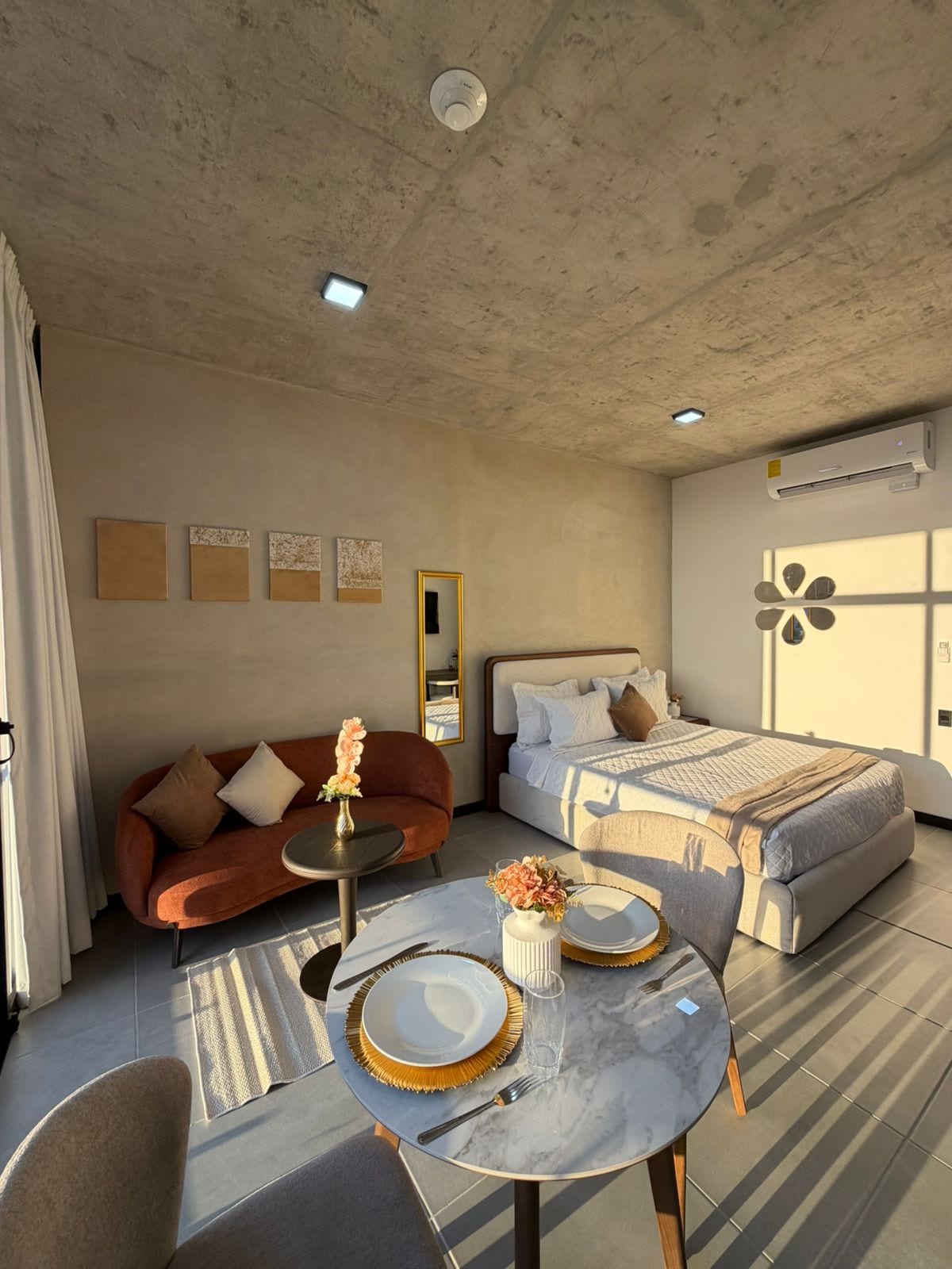 Nuestros estudios en Zama Homes invitan al descanso y la tranquilidad, ofreciendo un refugio sereno. Localizados en la mejor zona de La ciudad, cuentan con una vista espectacular y amenidades pensadas para tu comodidad, creando un espacio perfecto para relajarte, trabajar o simplemente disfrutar del momento. Cada detalle ha sido diseñado para que tu estancia sea acogedora, armoniosa y memorable. Padma Homes: calma y bienestar en el corazón de la ciudad.