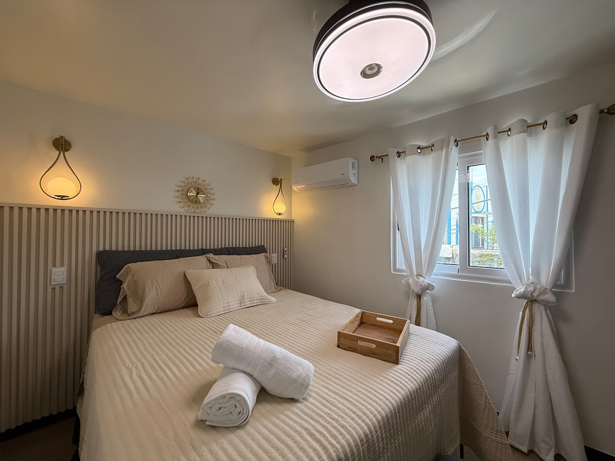 High-end luxury style 1-Bedroom apartment right in the heart of El Salvador del Mundo. Enjoy a stylish experience at this centrally located apartment close to shops and restaurants. Amenities Included: Welcome beverages AC in bedroom AC in living room Fast internet Bluetooth speaker Hot water Coffee machine and tea Air purifier Body soap and shampoo Laundry with detergent Smoke alarm Carbon monoxide alarm Professionally cleaned 24/7 security