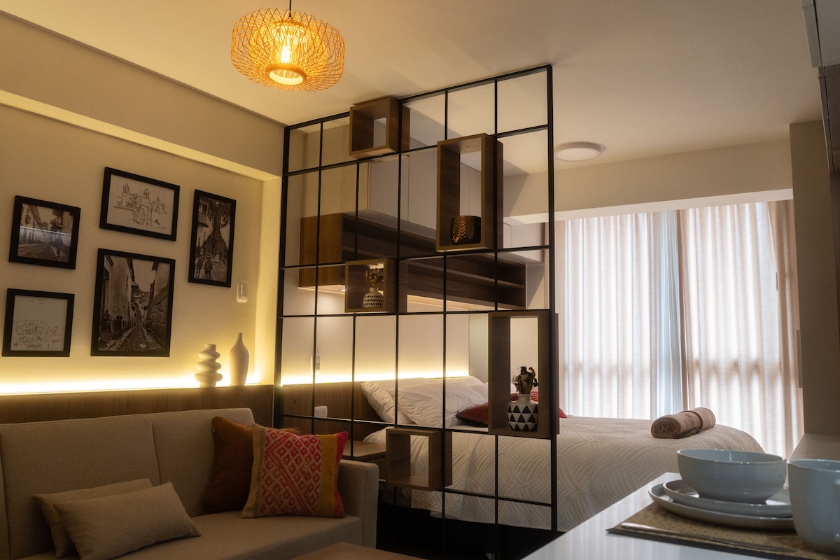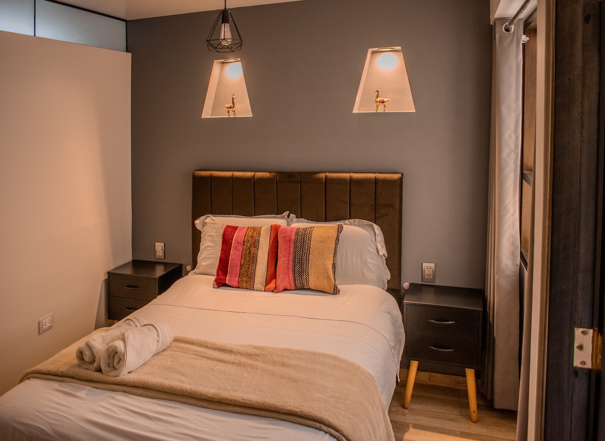 🏠Moderno y acogedor loft ubicado en Cusco, ideal para parejas o viajeros que buscan comodidad y estilo. 🏆El espacio cuenta con una distribución abierta que integra sala, comedor, cocina y habitación en un solo ambiente cálido y funcional. 🏆Cuenta con buena iluminación natural, decoración contemporánea con detalles andinos y todo lo necesario para una estadía confortable. A 25 minutos caminando y 10 minutos en taxi del centro de Cusco