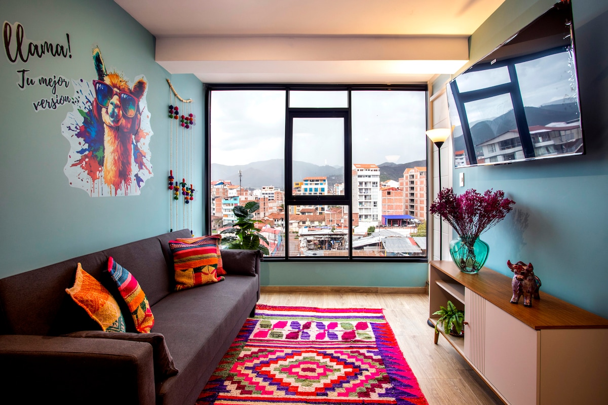 ✨ Tu base perfecta para explorar Cusco y Machu Picchu ✨ ¡Bienvenidos! Este moderno departamento en el piso 9 te ofrece una vista espectacular a las montañas andinas, un ambiente cómodo y una ubicación estratégica, perfecta para turistas que desean conocer lo mejor de Cusco. Ubicado en la tranquila y segura zona de Wanchaq, estarás a solo 15 minutos en auto del centro histórico, con fácil acceso a taxis, transporte público y tours hacia Machu Picchu, el Valle Sagrado, Montaña de 7 Colores y más.
