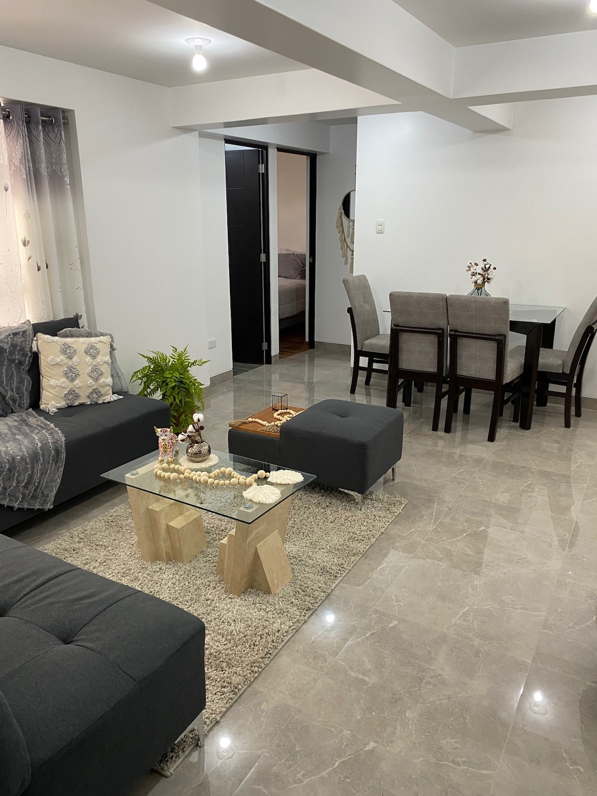 Only 10 minutes by car from the Historic Center of Cusco and the airport, this modern apartment offers comfort in a safe and quiet residential area, with easy access to main avenues, shops, and restaurants. It features fast WiFi, a strong hot shower with 24-hour hot water, and very comfortable beds for a great rest. The apartment also includes a fully equipped kitchen, washing machine, and an electric heater for extra comfort during your stay.