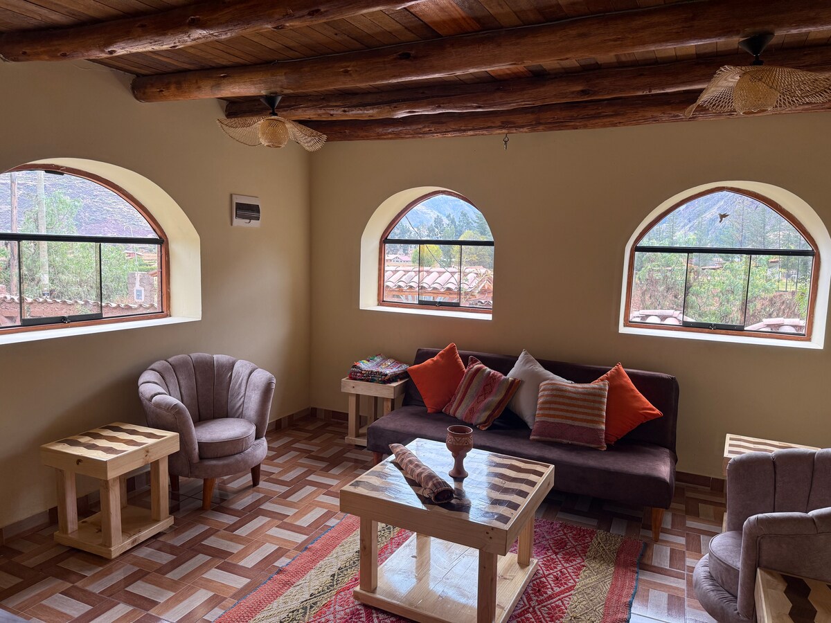 Peaceful retreat surrounded by nature in the Sacred Valley, ideal for resting or working in a calm setting. Located just 8 minutes from Pisac and 40 minutes from Cusco, it offers a quiet environment with a garden, open views, a fireplace, and optimized internet. The house features 3 bedrooms and 2 bathrooms, providing comfort and privacy with easy access to the main attractions of the Sacred Valley.