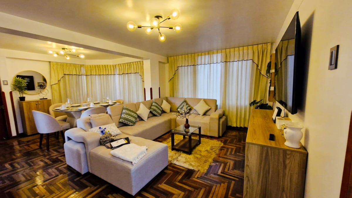 BRAND NEW apartment with three bedrooms, full kitchen, living room, exclusive and very quiet area. everything is new, beautifully decorated Perfect location! very close to the San Blas market, San Blas square, 12 Angle Stone and Cusco's Plaza De Armas, just a 15-minute walk away. we help you with check-in and check-out Suitable for couples, business trips, families or groups of up to 6 adults. We offer exclusive transportation service for our guests.