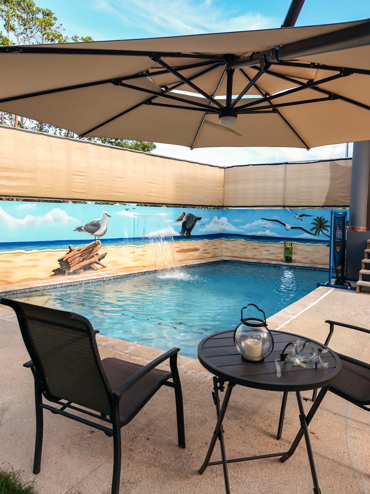 MonteFina Villa Boutique is pleased to present and share with you a wonderful experience where you can accommodate up to 10 people with comfort. Located in the beautiful town of San Sebastián, Puerto Rico. Completely countryside our Villa has a master bedroom with a private bathroom and direct connection to our terraza with outdoor Swimming Pool and Bath. Lower Floor has a Fully Equipped room with Bathroom and Private Jaccuzi with View to our Lake.