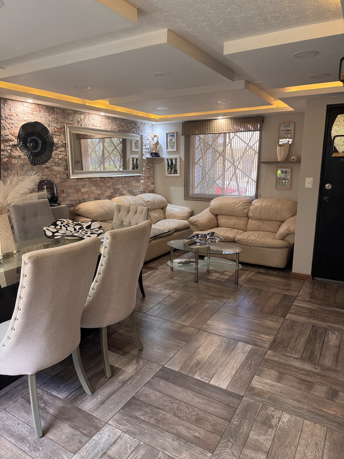 Casa de dos Pisos, cuenta con: 2 habitaciones una habitación con baño completo, sala comedor,cocina (refrigerador, horno de Microondas, licuadora, Estufa, utensilios de cocina) Cuenta con Internet patio de servicio, 2 baños completos y un medio baño, cochera, television de 50 pulgadas y una pantalla en la sala.