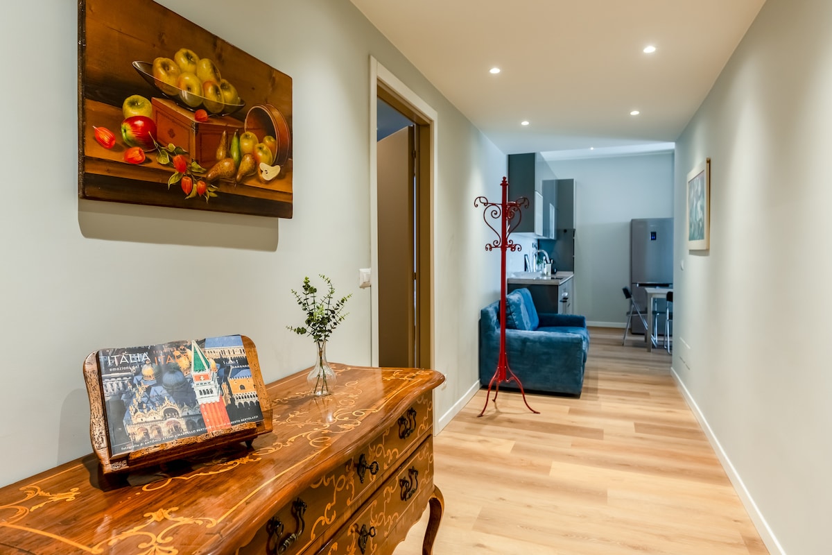 4 mins from Expo Fiera and 15 mins from the city center (by train). 10 mins by bus to reach the subway. Peaceful district with private security dedicated and free parking in the whole road. 45sqm open space apt on the 4th floor with elevator. Urban view. Bedroom with king-size sofabed on a wide sunny balcony where to enjoy italian breakfast in the morning. Hallway with spacious closet. Windowed bathroom where to feel at home with our fragrance diffuser and a warm shower at the end of your day.