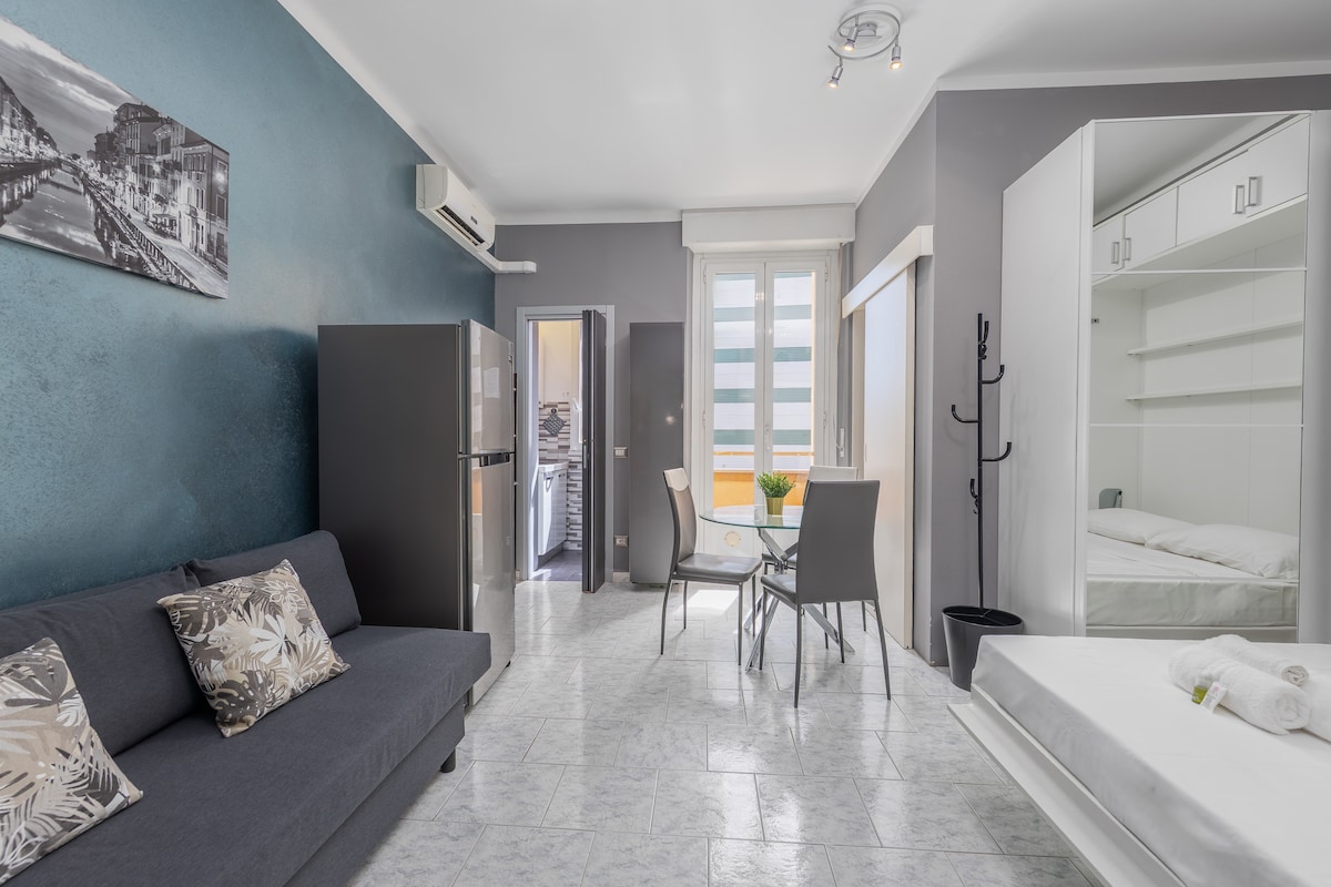 Grazioso e moderno appartamento in centro, in uno dei quartieri più vivaci di Milano, a pochi passi dalla Darsena e dai Navigli, 15 minuti a piedi dal Duomo, ben servito dai trasporti pubblici. Gli ospiti avranno a disposizione l’intero appartamento, recentemente ristrutturato, composto da open space con soggiorno e cucina a vista, due camere con letto matrimoniale e aria condizionata, bagno con doccia. L’affaccio esclusivamente interno garantisce silenzio e tranquillità.