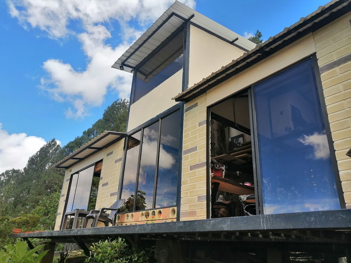 Este lugar único, cuenta con un diseño moderno, y que se incorpora al paisaje para permitir disfrutar de una vista Increíble desde el filo de una pequeña Colina en el municipio de San Vicente Ferrer, Antioquia. Es un sitio diseñado pensando en persona, que quieran vivir en un espacio de árboles, tener un lugar rural de fácil acceso a tan solo una hora de Medellín. Es ideal para un tiempo fuera de la cuidad y relajarse a disfrutar el paisaje del Oriente Antioqueño.
