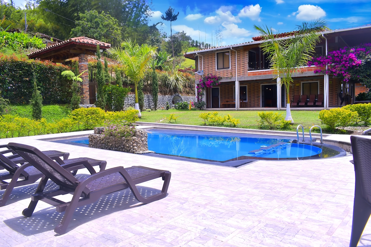 Un oasis de lujo y naturaleza cerca de Medellín Vive una experiencia inolvidable a solo 20 min del aeropuerto y 40 min de Medellín. Relájate en una piscina climatizada y jacuzzi de piedra natural, disfruta del turco, fogata y salón de juegos, o conéctate con la naturaleza en amplias zonas verdes con acceso al río. Con capacidad para 30 personas, esta finca combina comodidad, exclusividad y seguridad. ¡Tu escape perfecto te espera!